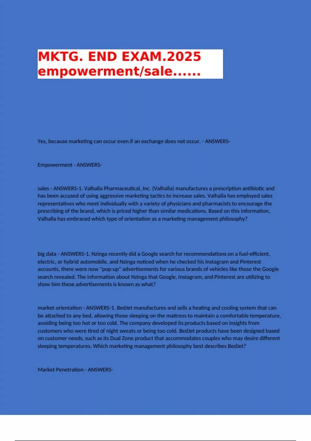 sales - ANSWERS-1. Valhalla Pharmaceutical, Inc. (Valhalla) manufactures a prescription antibiotic and