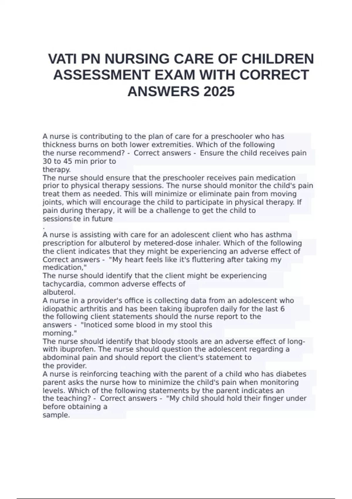 nurse recommend? - Correct answers - Ensure the child receives pain