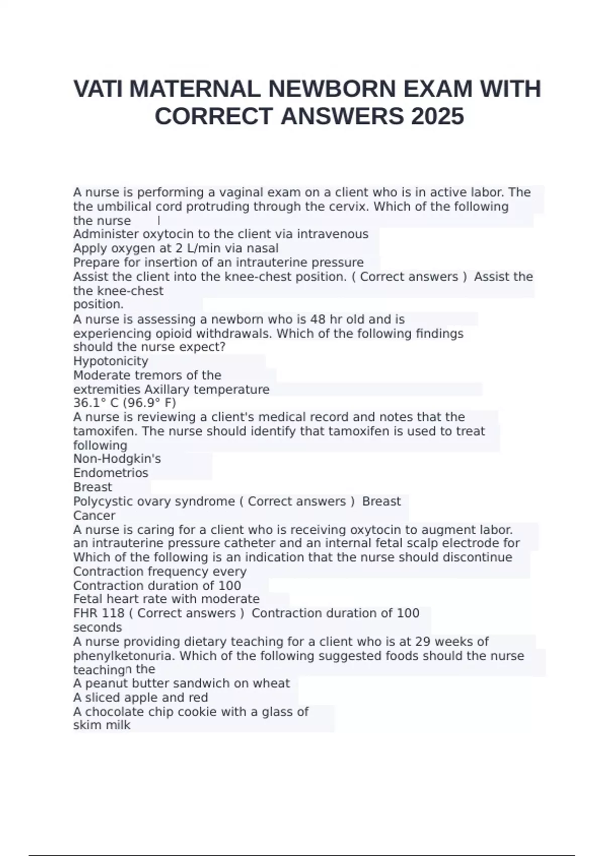 VATI MATERNAL NEWBORN EXAM WITH CORRECT ANSWERS 2025