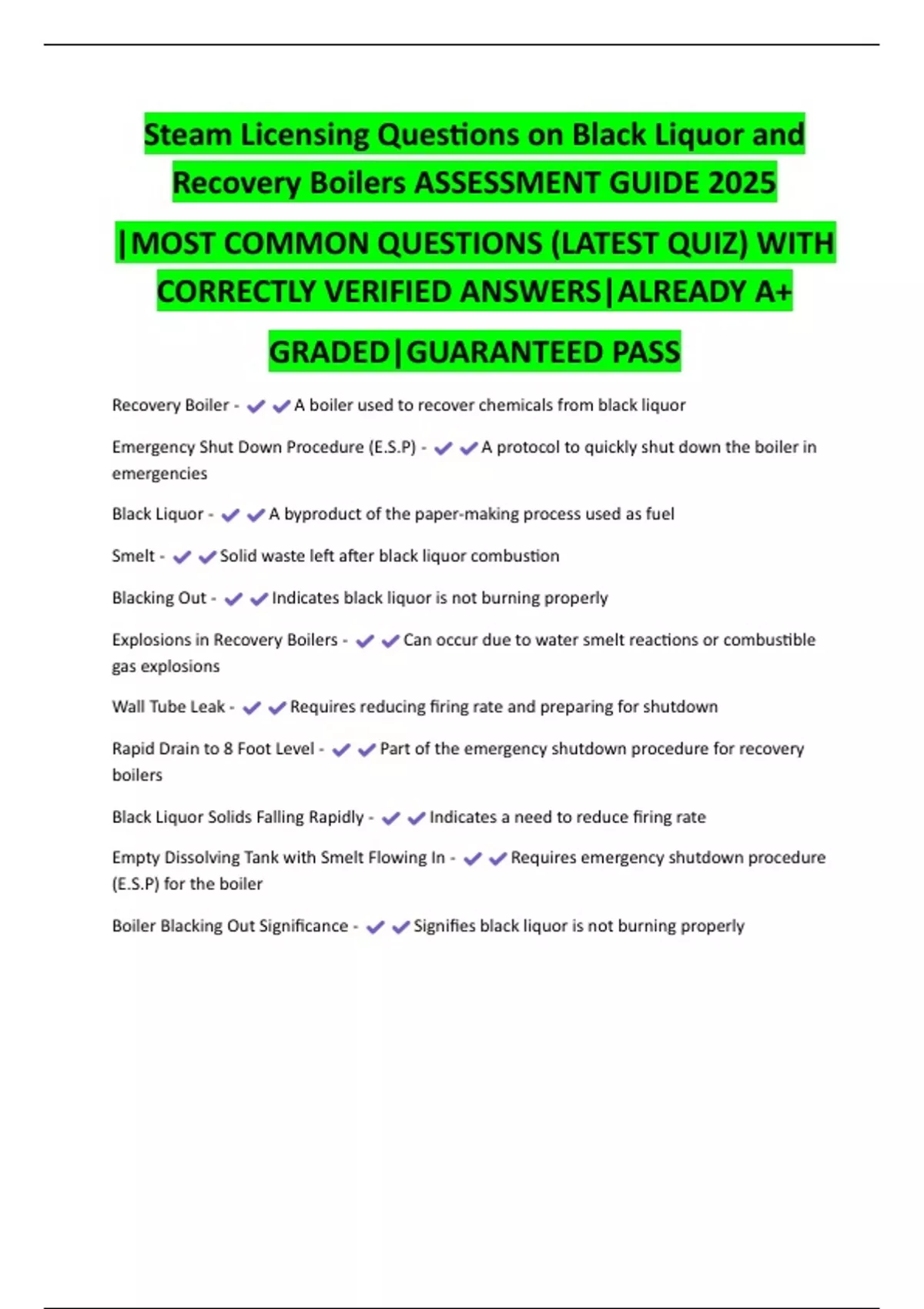 Recovery Boilers ASSESSMENT GUIDE 2025
