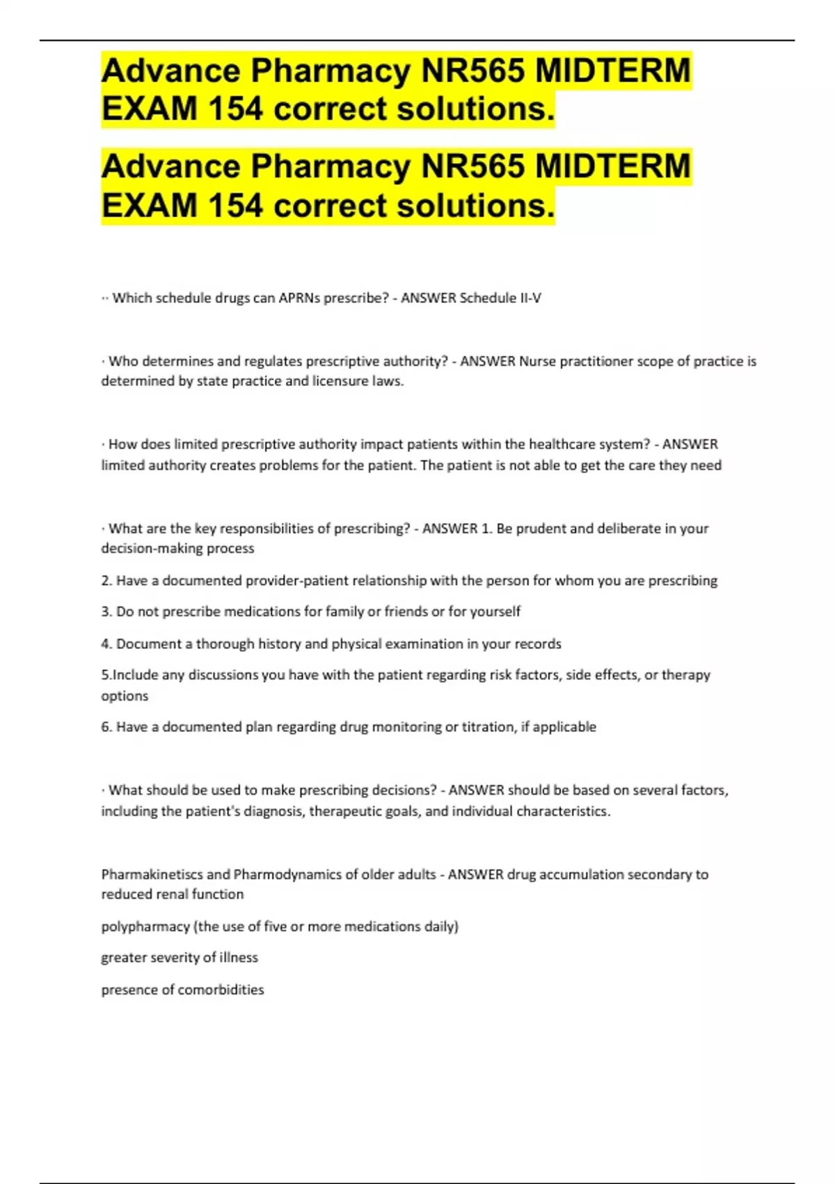 , Advance Pharmacy NR565 MIDTERM