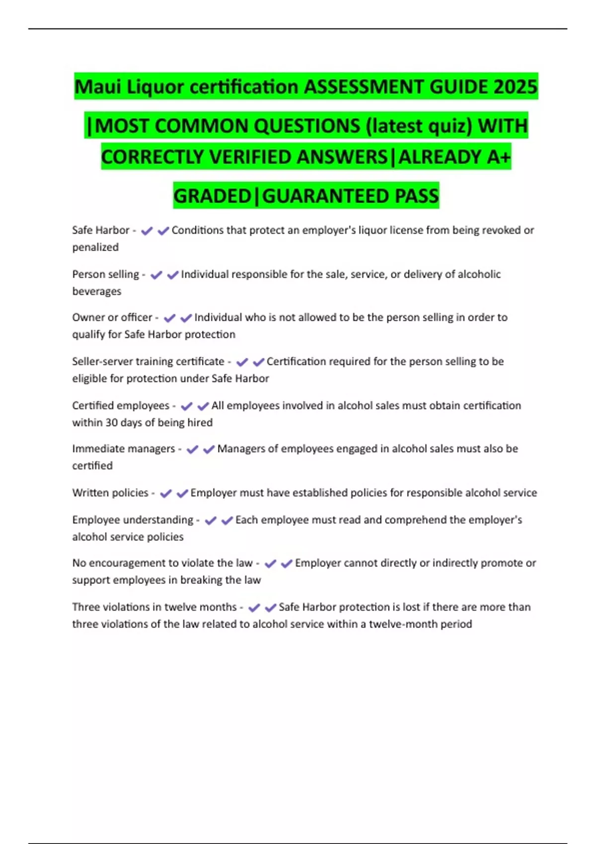 Safe Harbor - Conditions that protect an employer's liquor license from being revoked or