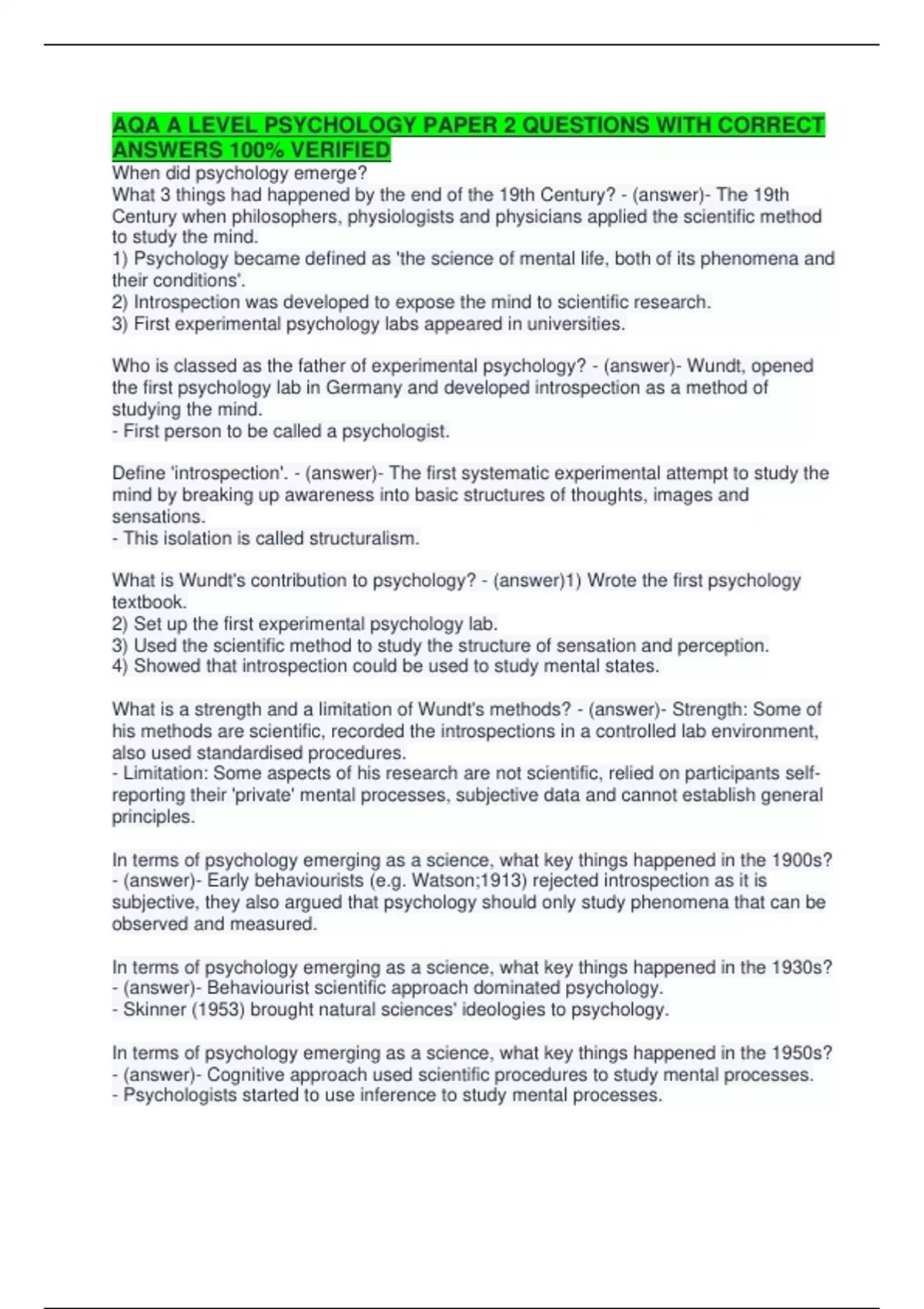What is Wundt's contribution to psychology? - (answer)1) Wrote the first psychology