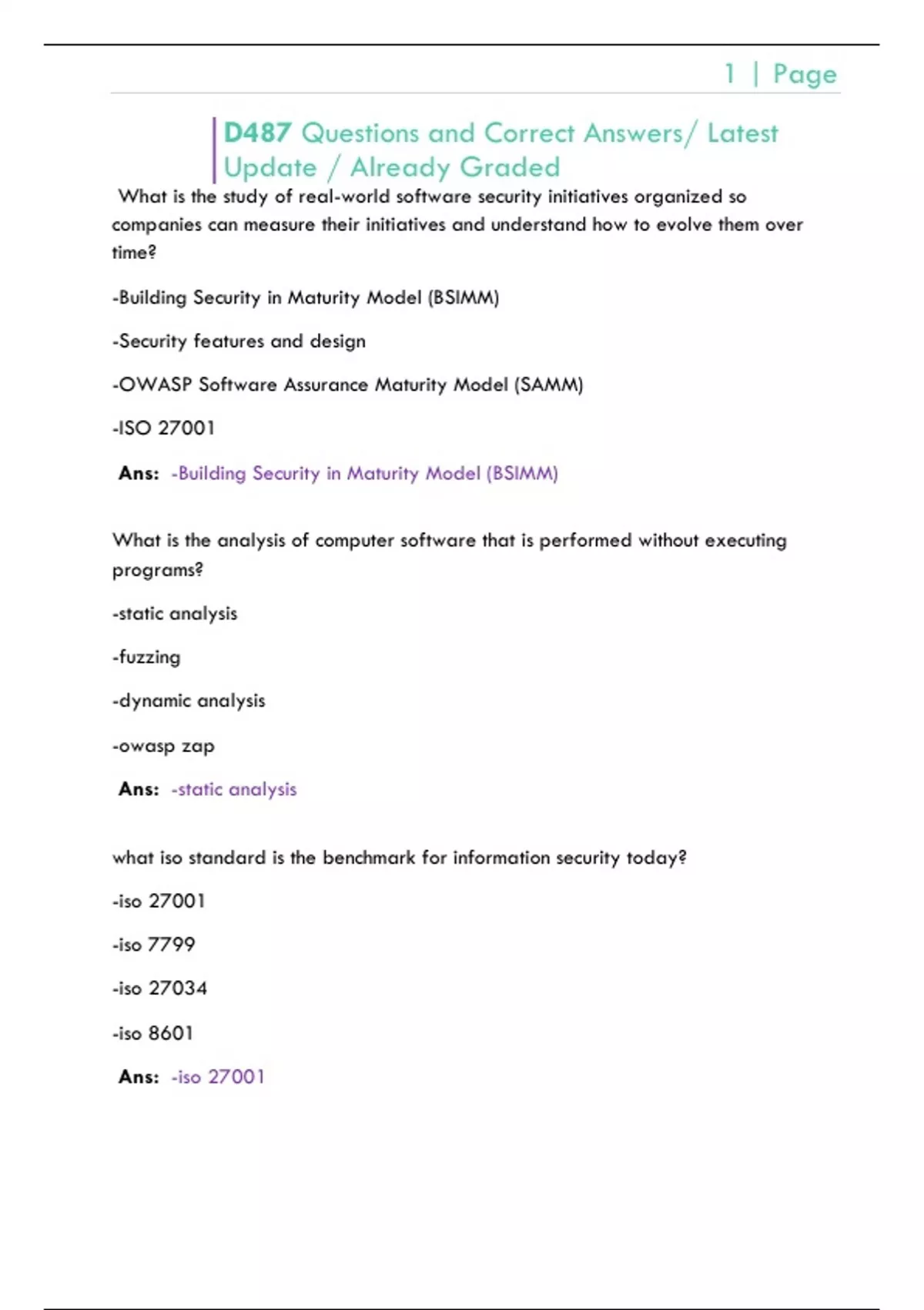 D487 Questions and Correct Answers/ Latest