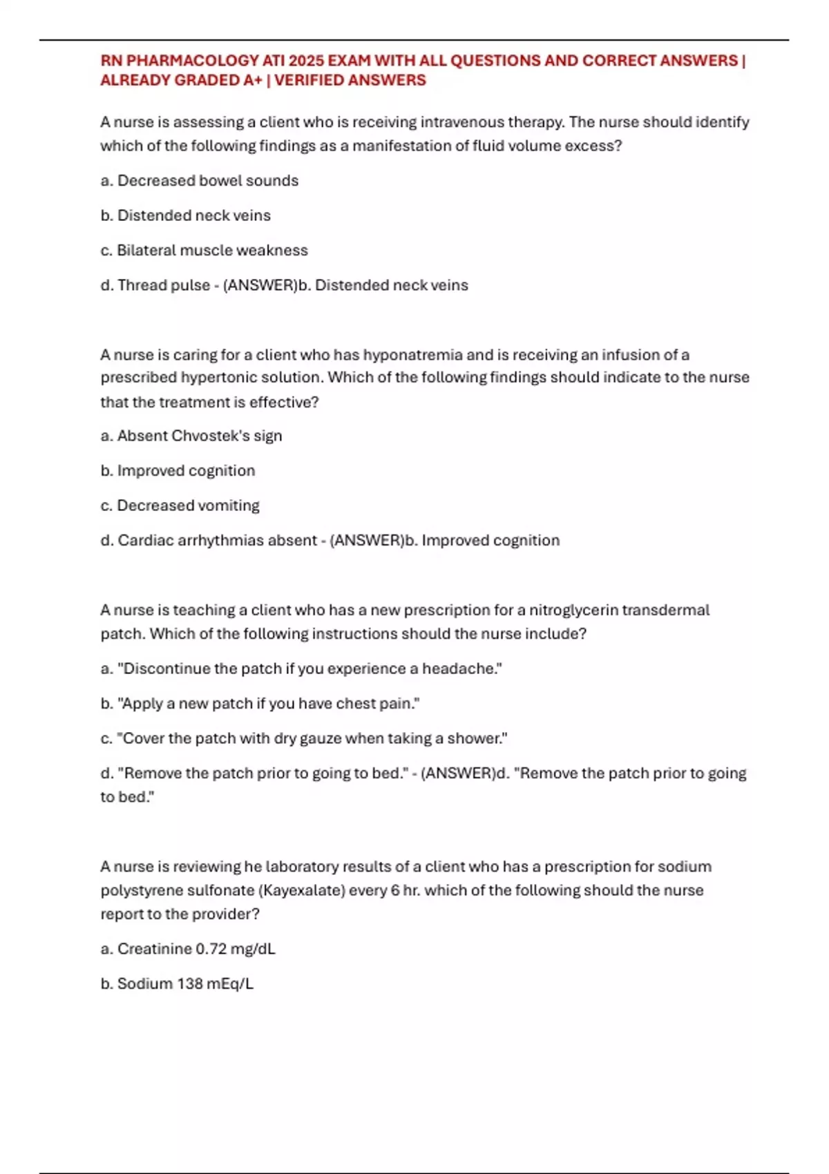 ,RN PHARMACOLOGY ATI 2025 EXAM WITH ALL QUESTIONS AND CORRECT ANSWERS |