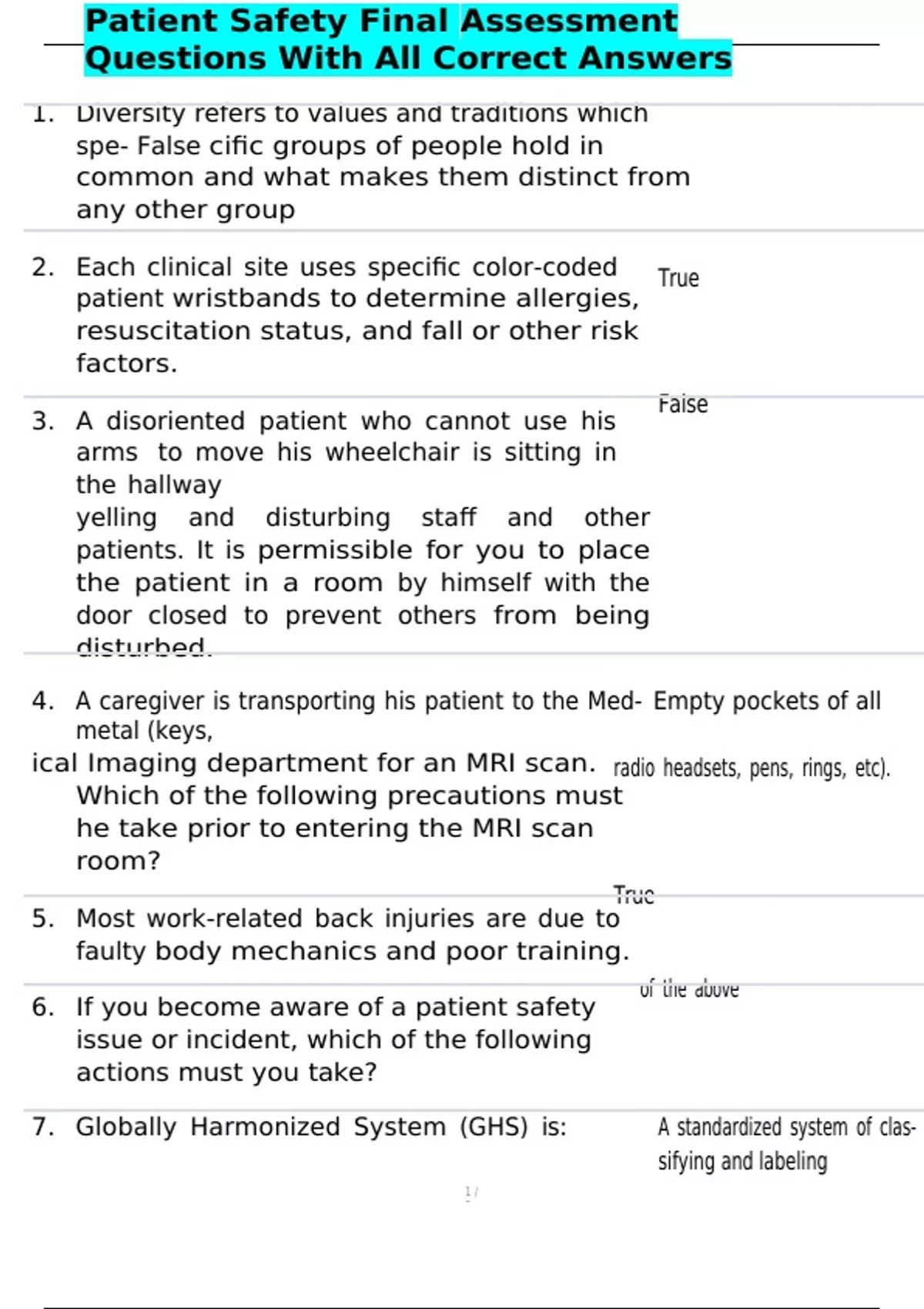 Patient Safety Final Assessment Questions With All Correct Answers