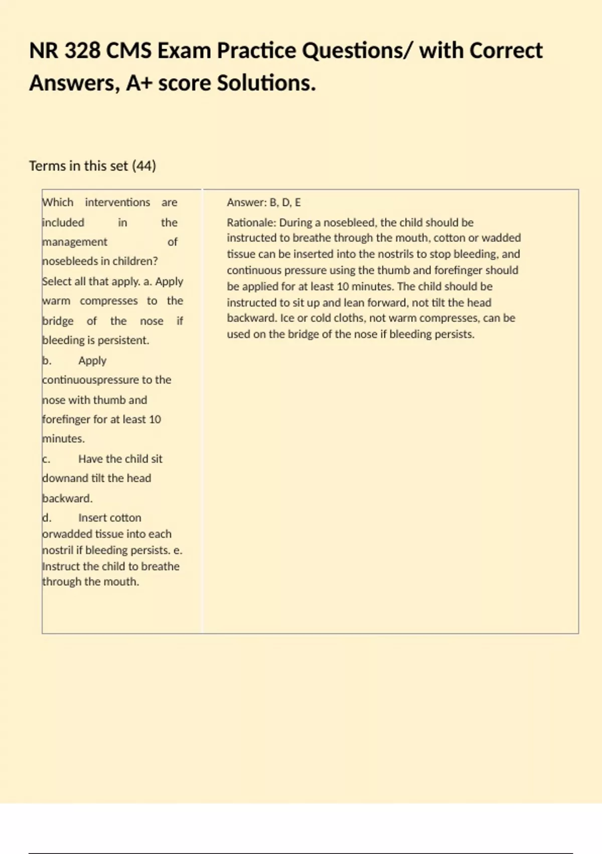 NR 328 CMS Exam Practice Questions/ with Correct Answers, A+ score Solutions.