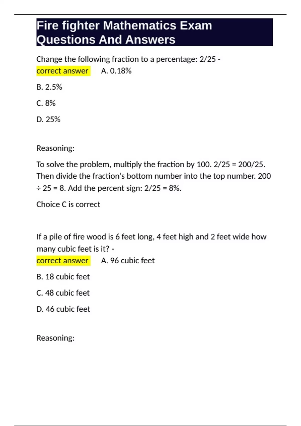,Fire fighter Mathematics Exam