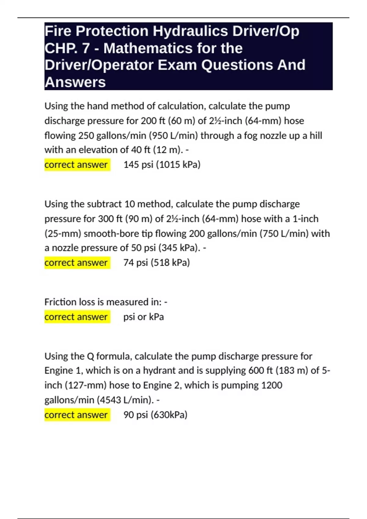 Driver/Operator Exam Questions And