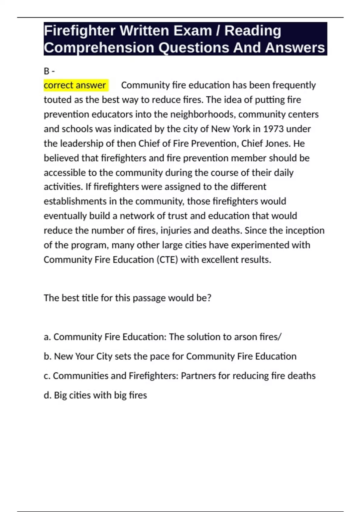 ,Firefighter Written Exam / Reading