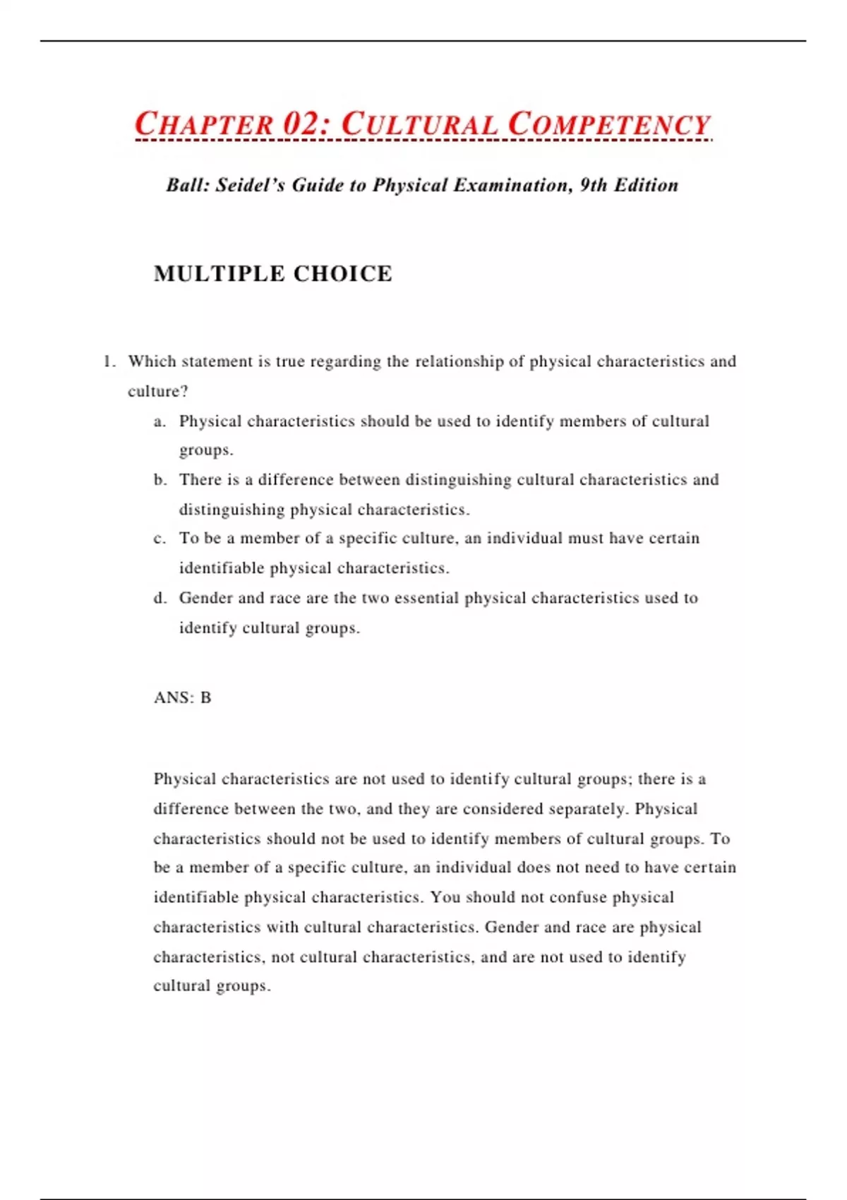 Physical characteristics are not used to identi fy cultural groups; there is a