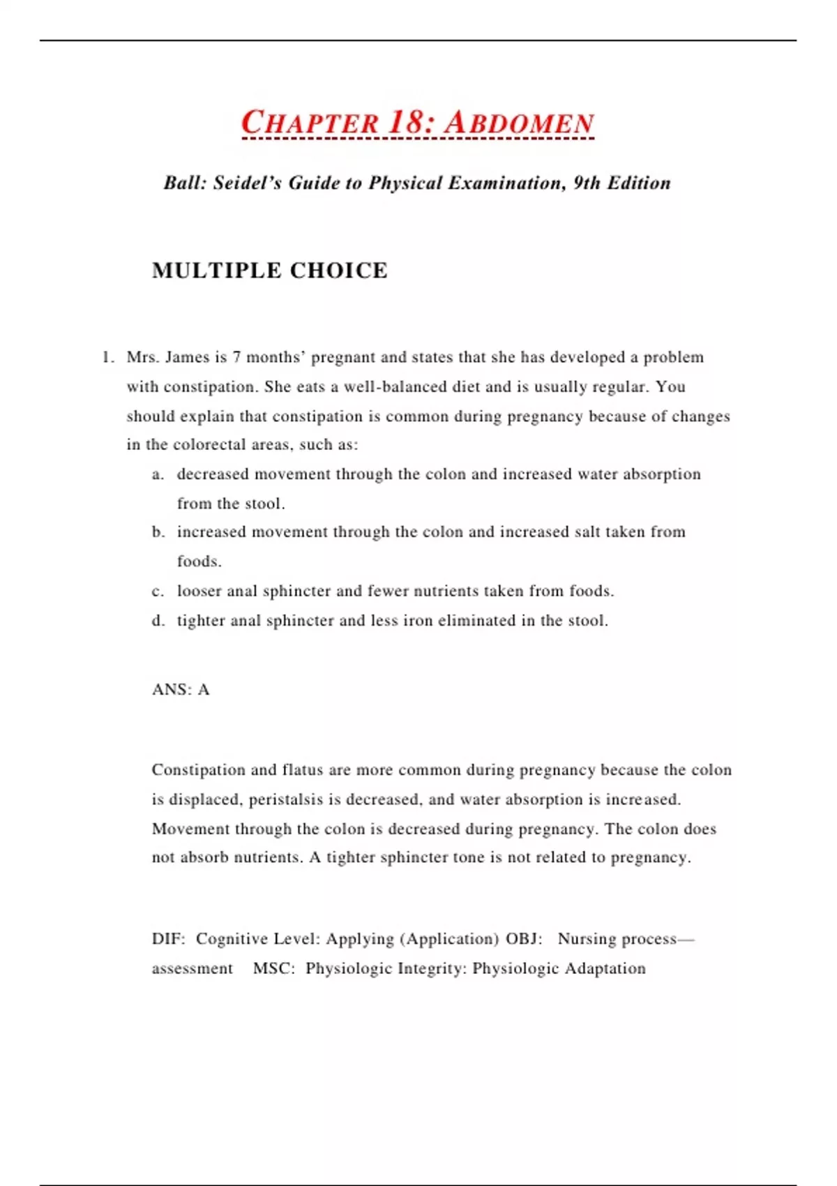 1. Mrs. James is 7 months’ pregnant and states that she has developed a problem