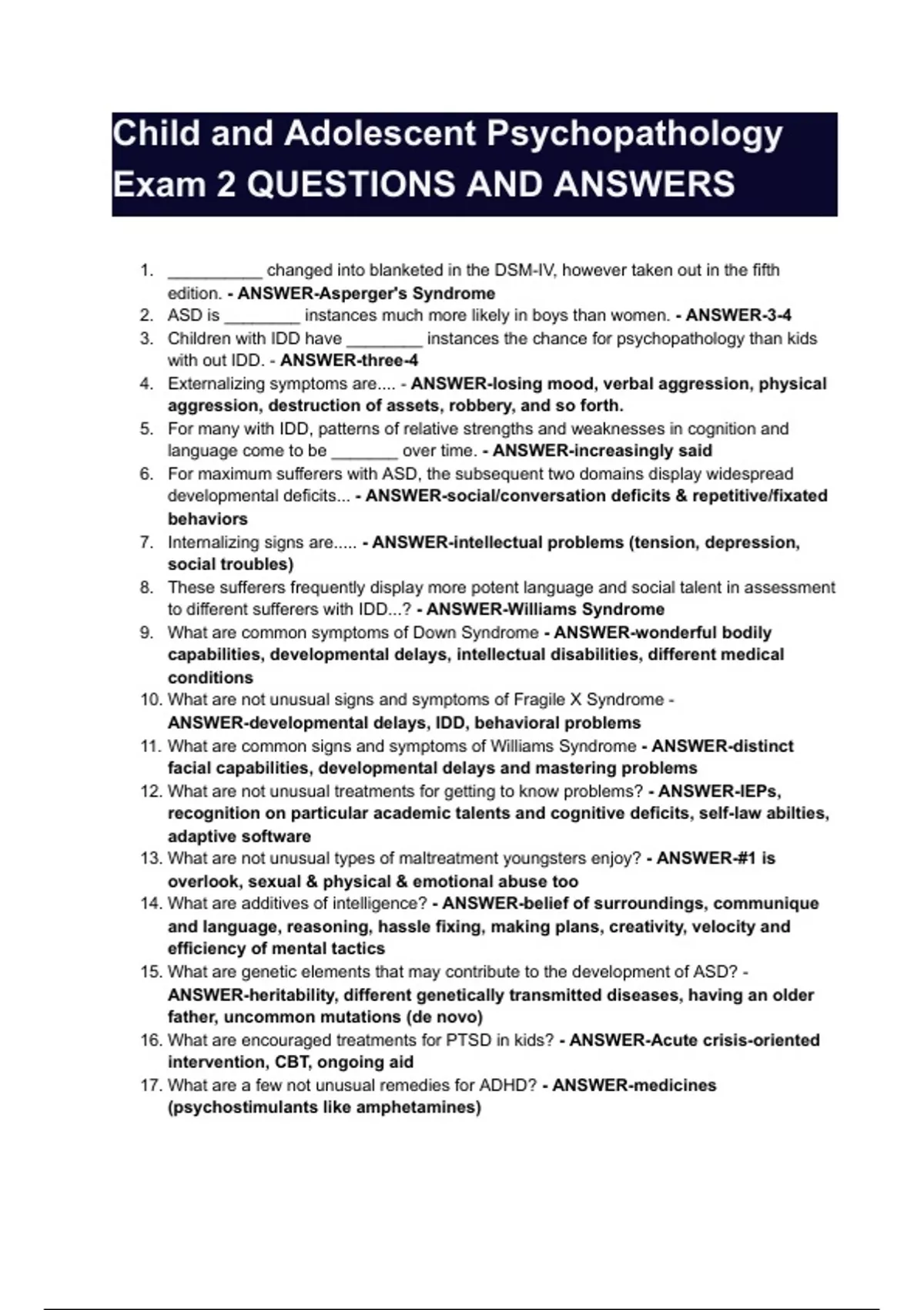 2. ASD is ________ instances much more likely in boys than women. - ANSWER-3-4