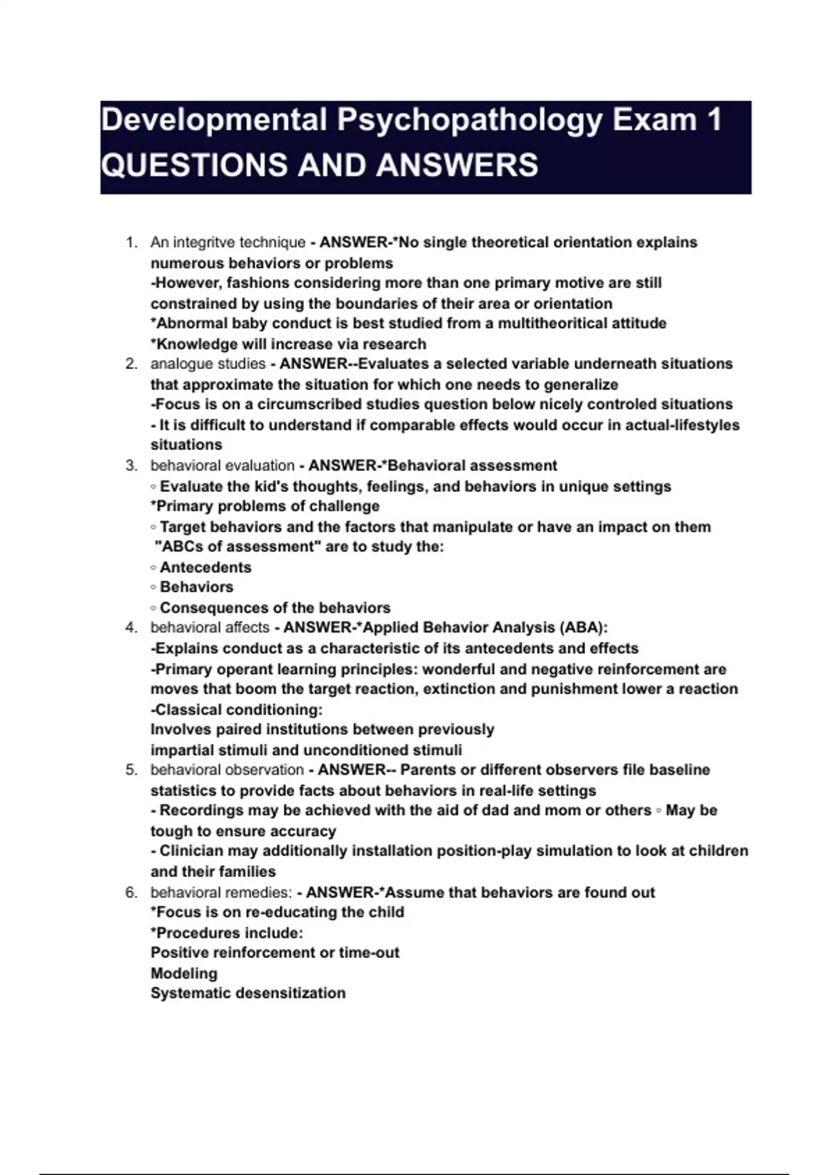 Developmental Psychopathology Exam 1 QUESTIONS AND ANSWERS