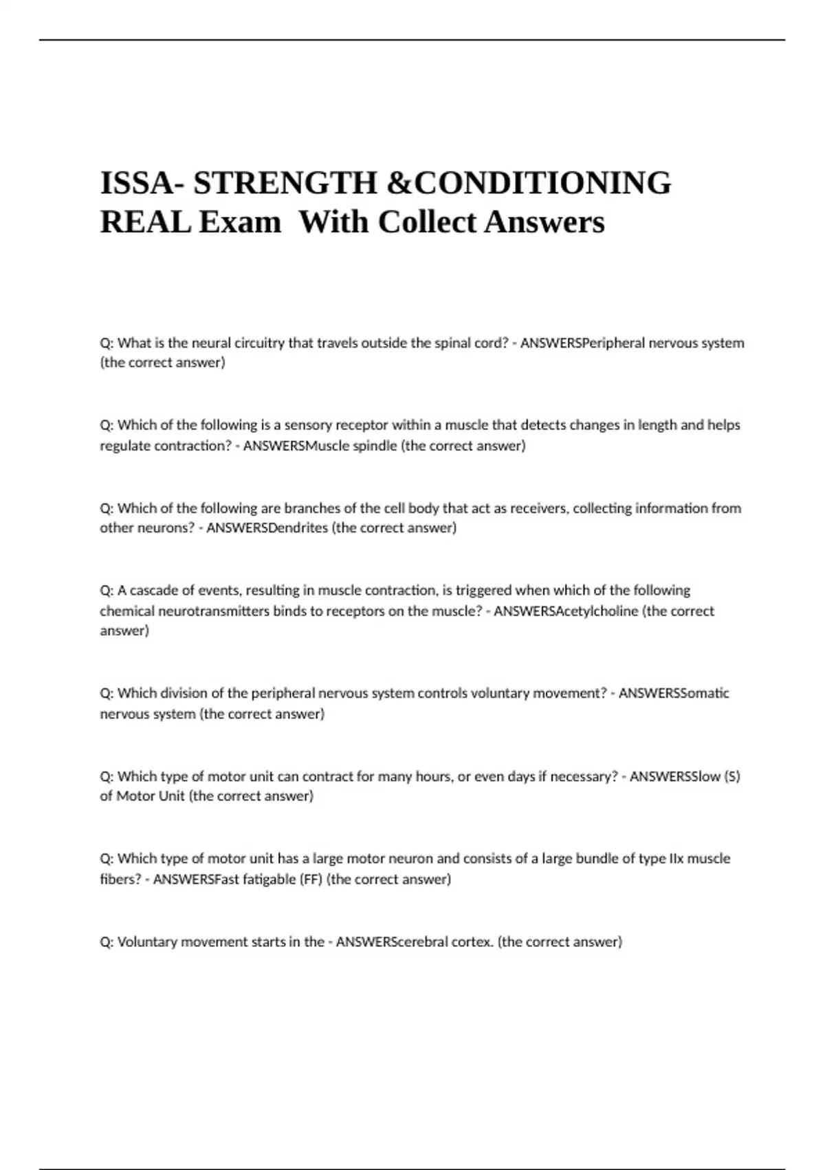 ISSA- STRENGTH &CONDITIONING REAL Exam With Collect Answers