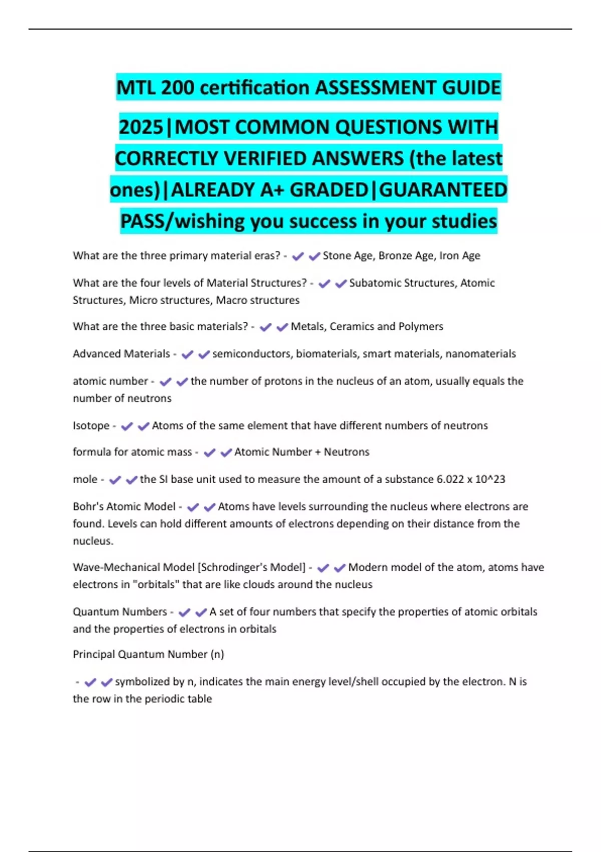 MTL 200 certification ASSESSMENT GUIDE 2025|MOST COMMON QUESTIONS WITH CORRECTLY VERIFIED ANSWERS (the latest ones)|ALREADY A+ GRADED|GUARANTEED PASS/wishing you success in your studies