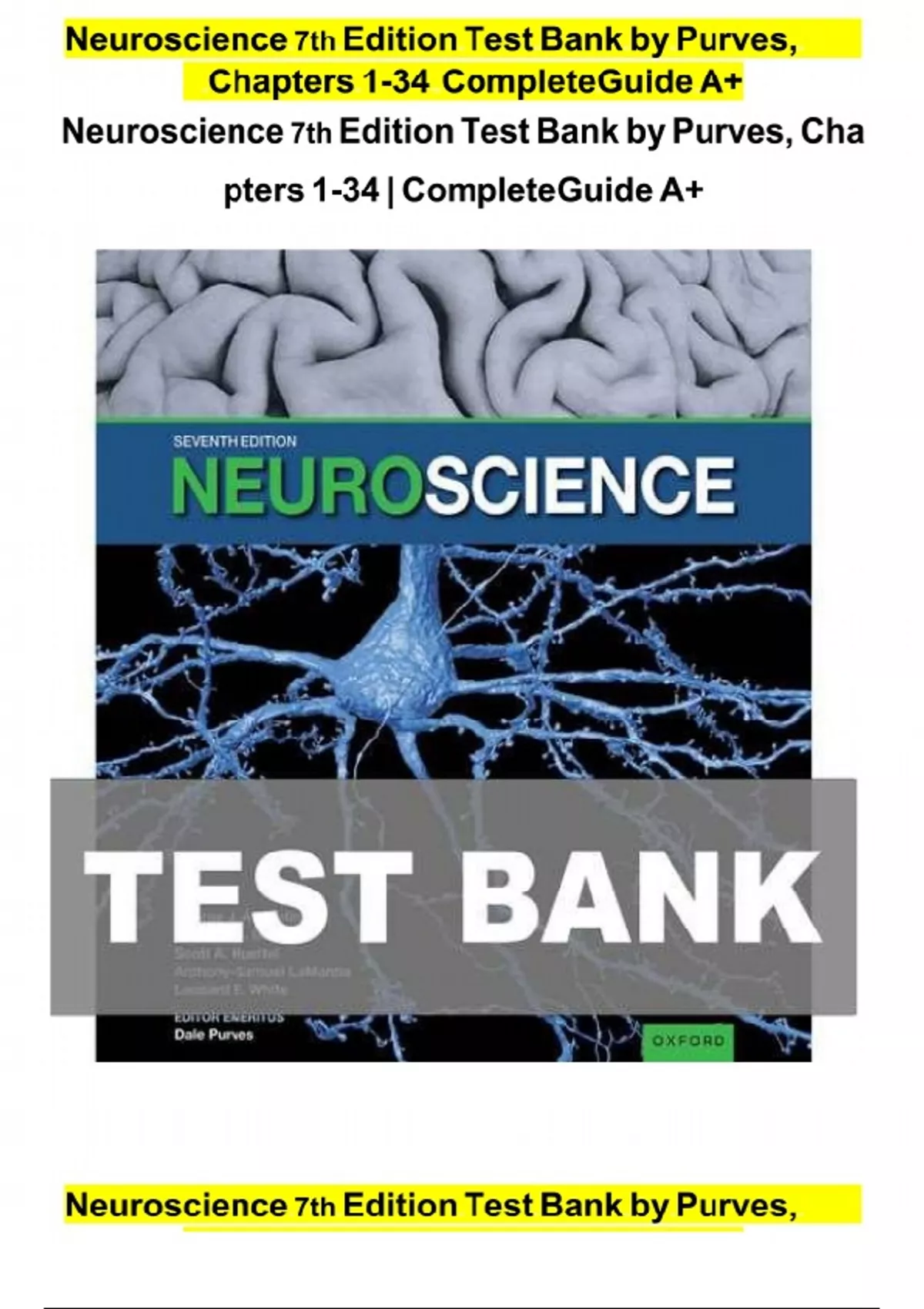 Neuroscience 7th Edition TEST BANK By Augustine, Purves Test Bank is not a book but rather exam practice questions and answers. The test bank is available for download immediately after purchase. Test Bank for Neuroscience 7th Edition By Augustine, Purves is an essential tool designed to support students in mastering complex neuroscience concepts. Whether you're preparing for exams or reinforcing your understanding of key topics, this test bank is tailored to provide you with a comprehensive study experience. Packed with detailed Neuroscience 7th Edition quiz questions and exam practice materials, it serves as a reliable resource to guide your learning. You can download the Neuroscience Test Bank 7th Edition and access a wealth of information that aligns with the textbook by Augustine and Purves. This study guide and test bank not only boost your confidence but also help you excel in your coursework. Perfect for students aiming to perform at their best, the resource includes an array of questions that mirror real-world academic challenges. If you're looking to purchase Test Bank for Neuroscience 7th Edition, it’s the ideal companion to enhance your preparation. Don't miss out on this practical aid for studying neuroscience!