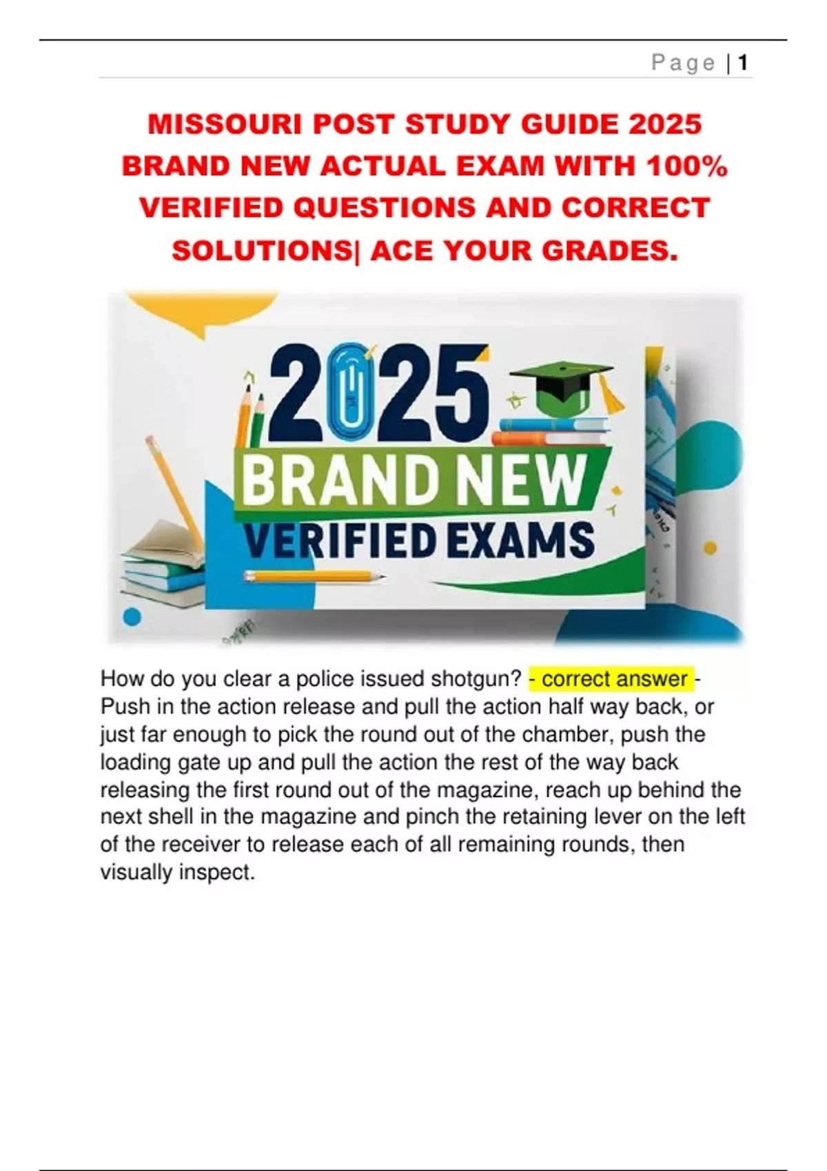 MISSOURI POST STUDY GUIDE 2025 BRAND NEW ACTUAL EXAM WITH 100% VERIFIED QUESTIONS AND CORRECT SOLUTIONS| ACE YOUR GRADES.