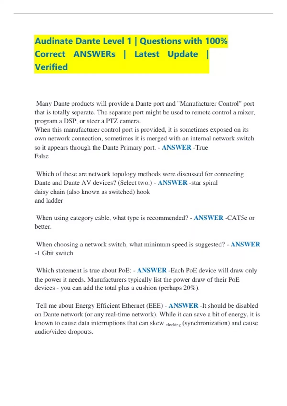 Correct ANSWERs | Latest Update |