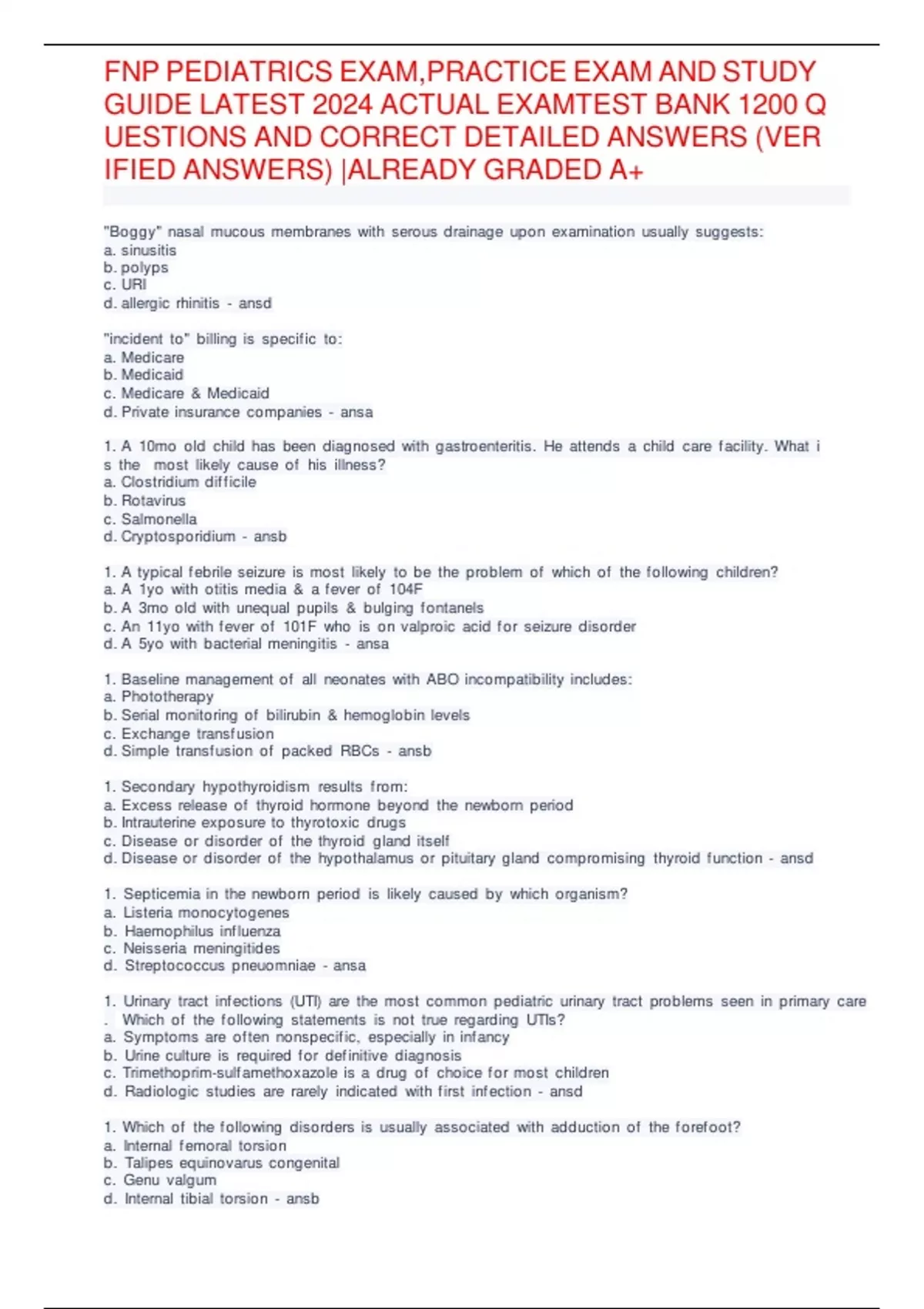 FNP PEDIATRICS EXAM,PRACTICE EXAM AND STUDY