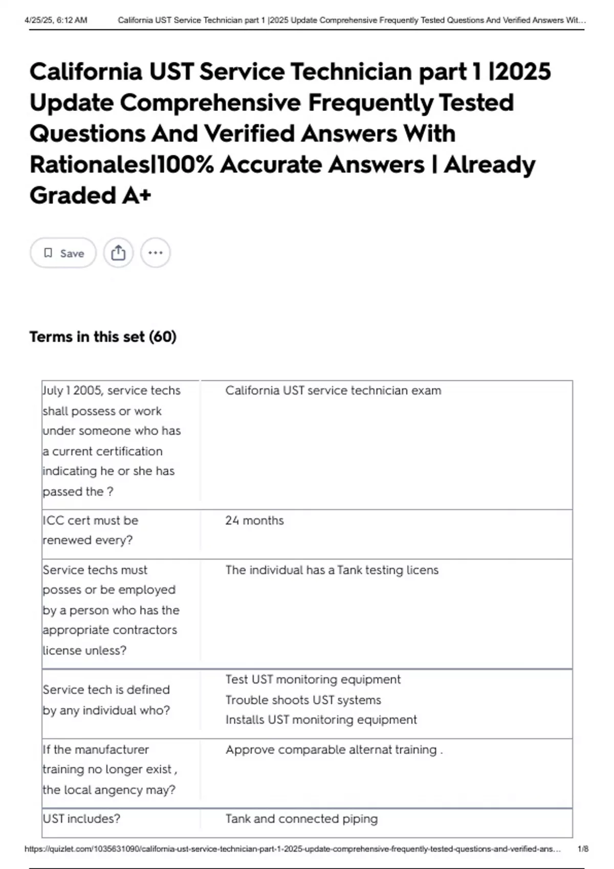 , 4/25/25, 6:12 AM California UST Service Technician part 1 |2025 Update Comprehensive Frequently Tested Questions And Verified Answers Wit…