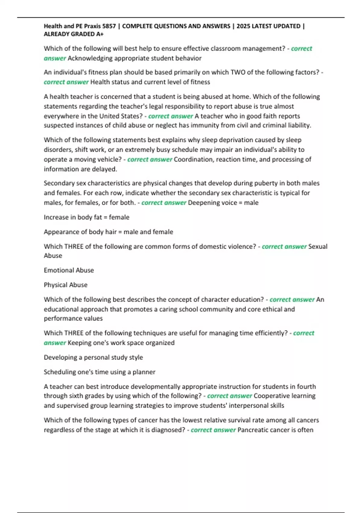 , Health and PE Praxis 5857 | COMPLETE QUESTIONS AND ANSWERS | 2025 LATEST UPDATED |