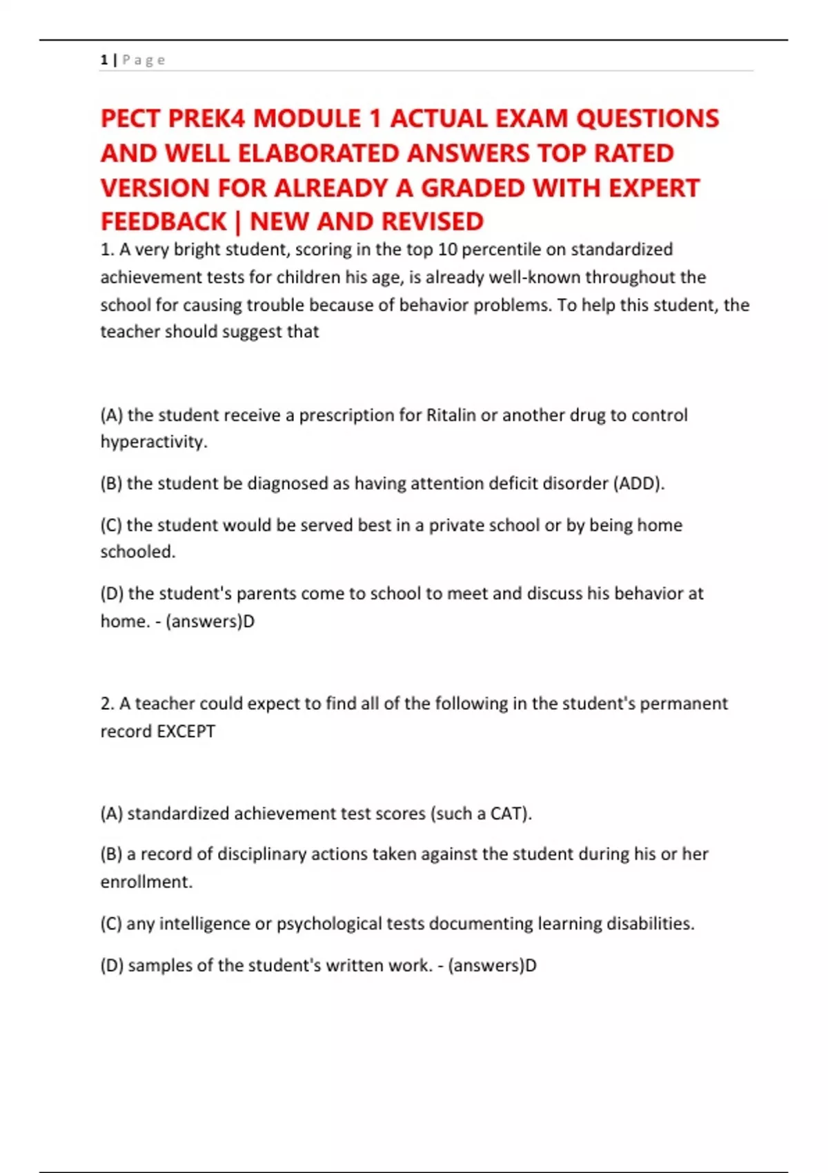 PECT PREK4 MODULE 1 ACTUAL EXAM QUESTIONS