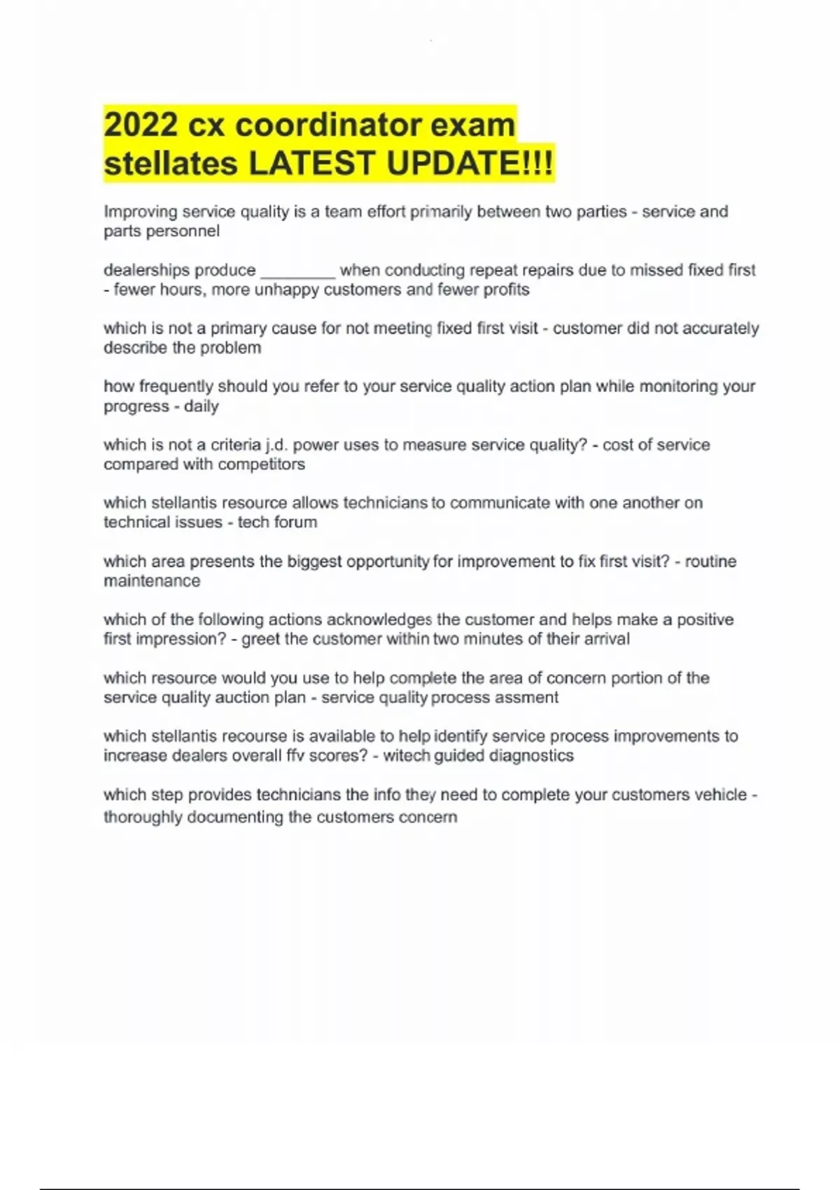 2022 cx coordinator exam stellates LATEST UPDATE!!!