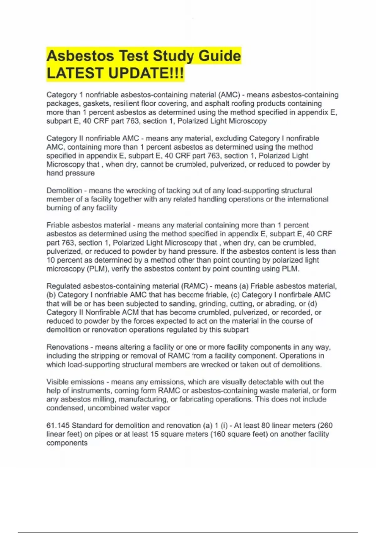 Asbestos Test Study Guide LATEST UPDATE!! Asbestos Test Study Guide LATEST UPDATE!!