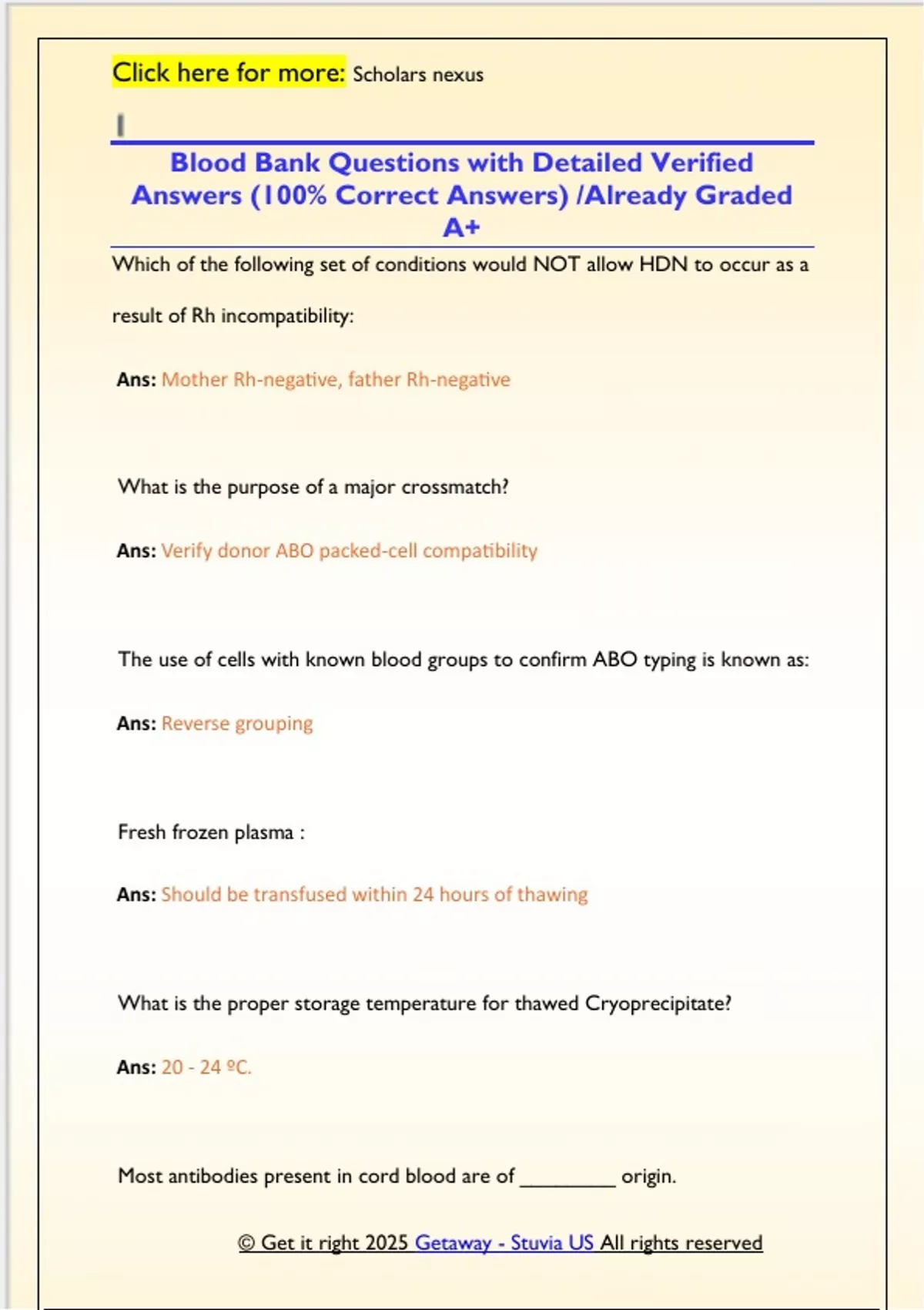 Blood Bank Questions with Detailed Verified