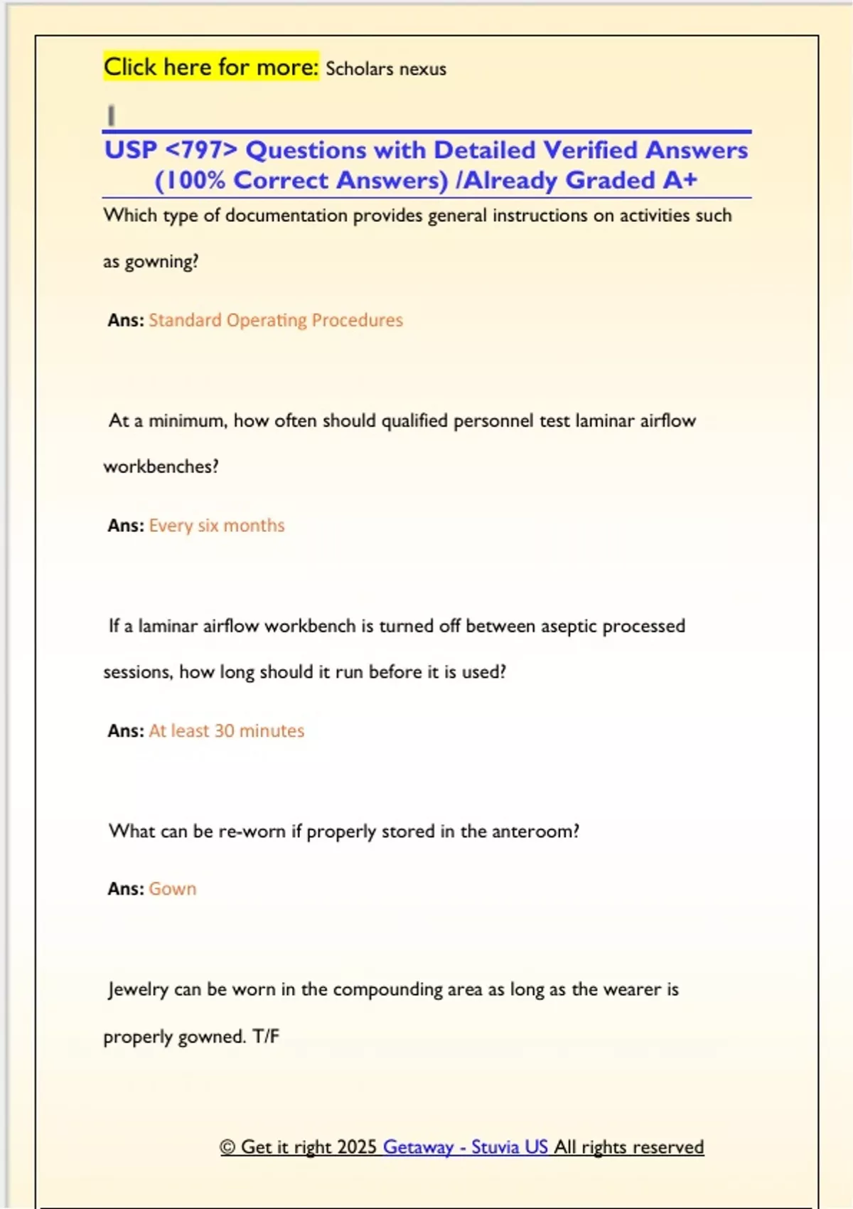 USP &lt;797&gt; Questions with Detailed Verified Answers (100% Correct Answers) /Already Graded A+ USP &lt;797&gt; Questions with Detailed Verified Answers (100% Correct Answers) /Already Graded A+