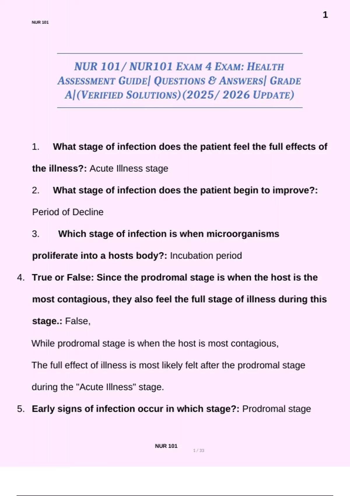 NUR 101/ NUR101 EXAM 4 EXAM: HEALTH