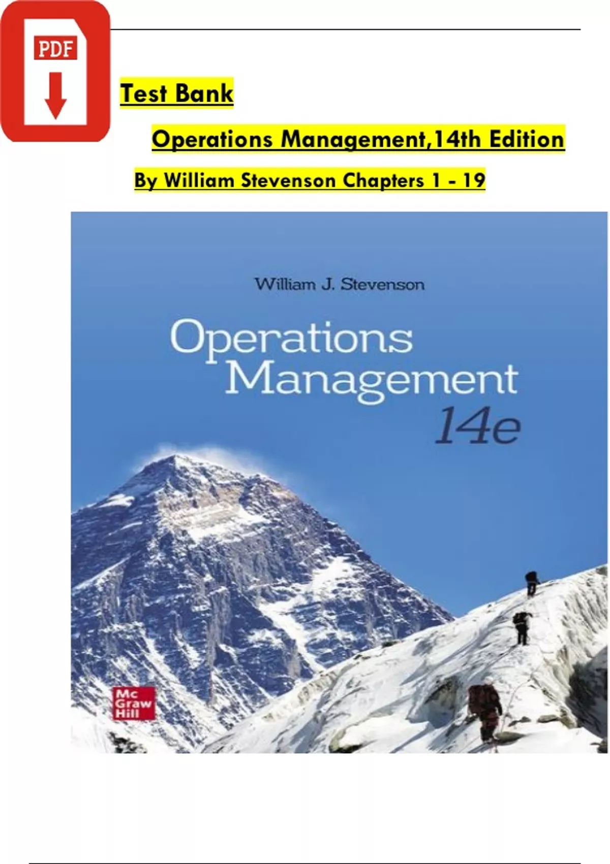 TEST BANK for Operations Management, 14th Editio by William Stevenson, Verified Chapters 1 - 19, Complete Newest Edition