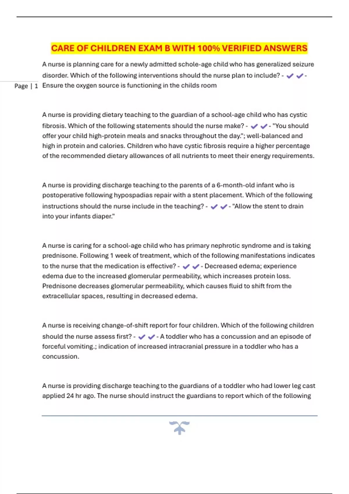 Page | 1 Ensure the oxygen source is functioning in the childs room