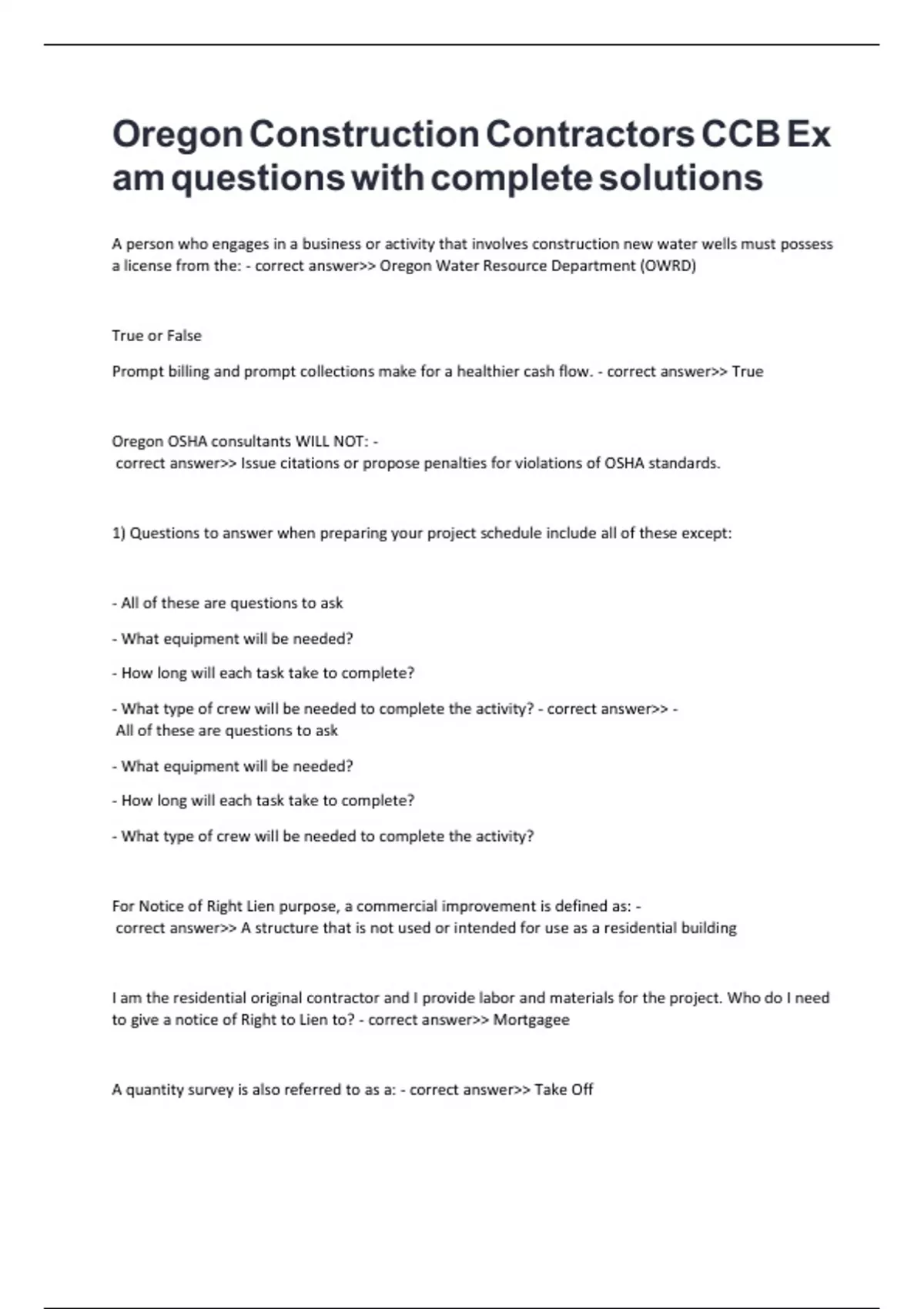OREGON CONSTRUCTION CONTRACTOR CCB TEST 3 ACTUAL TEST COMPLETE REAL QUESTIONS AND CORRECT VERIFIED ANSWERS (A NEW UPDATED VERSION)
