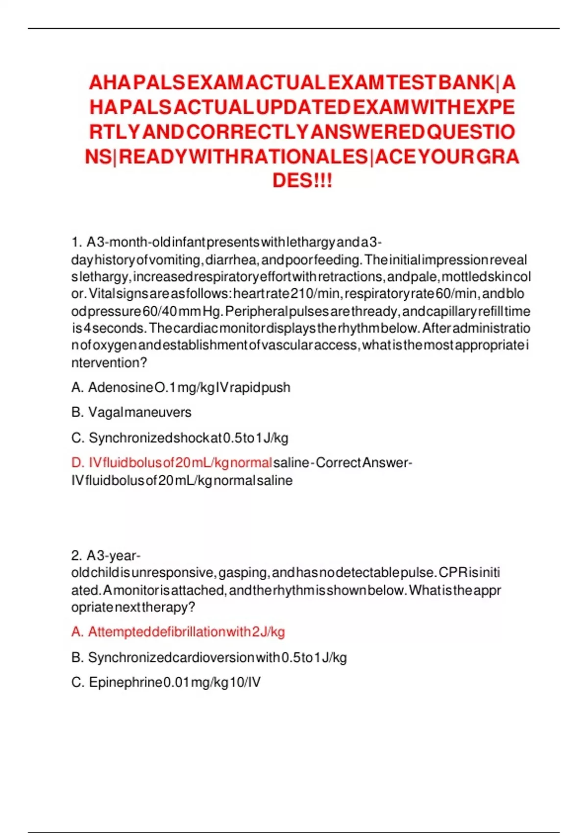 AHA PALS EXAM ACTUAL EXAM TEST BANK| A j j j j j j j