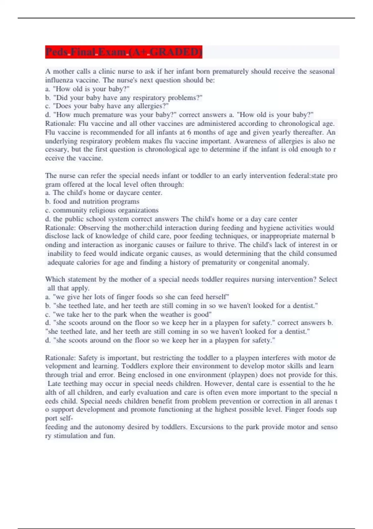 Peds Final Exam (A+ GRADED)
