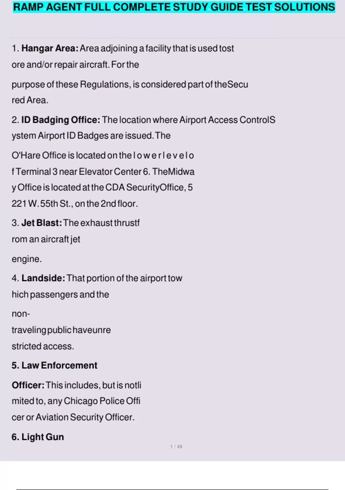 RAMP AGENT FULL COMPLETE STUDY GUIDE TEST SOLUTIONS