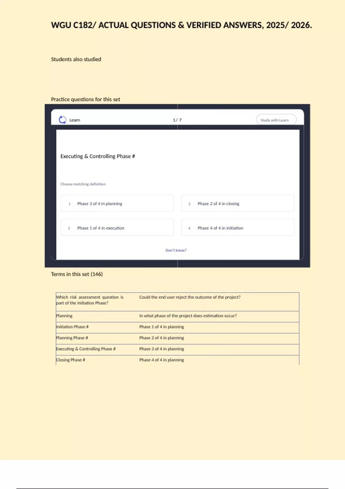 WGU C182/ ACTUAL QUESTIONS & VERIFIED ANSWERS, 2025/ 2026.