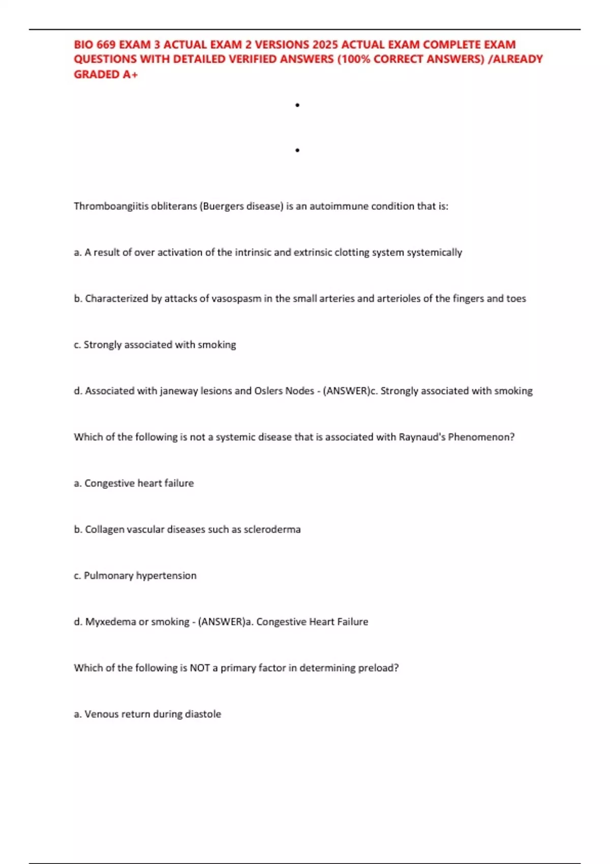 d. Afterload - (ANSWER)d. Afterload
