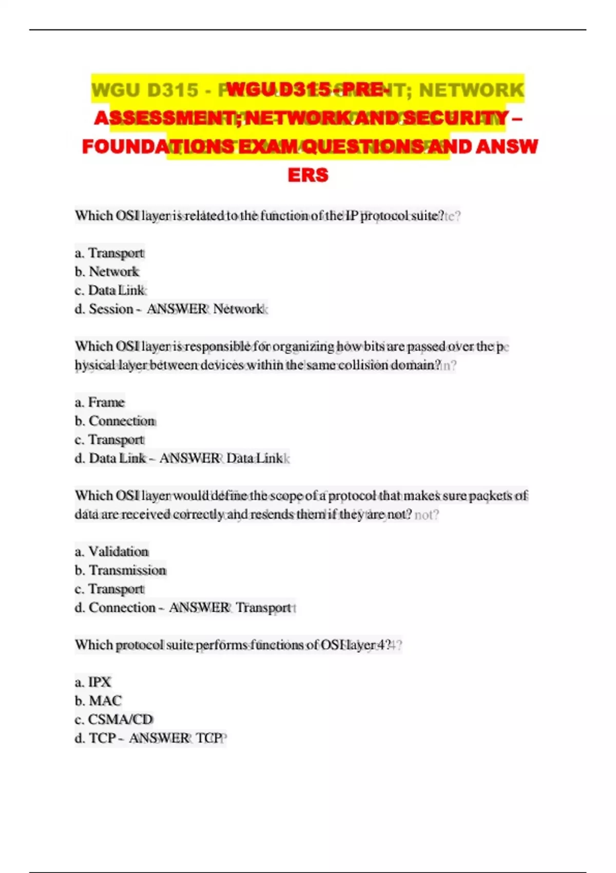 ASSESSMENT; NETWORK AND SECURITY – d d d d