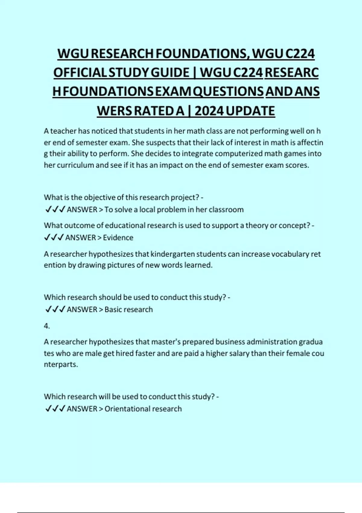WGU RESEARCH FOUNDATIONS, WGU C224 e e e e