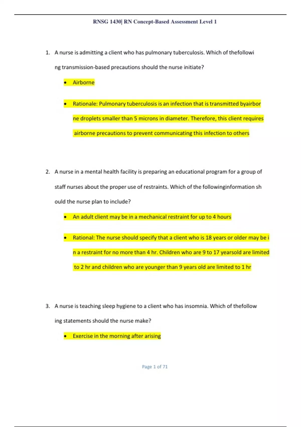 FUNCTIONAL ABILITY RNSG 1430 EXAM 1 LATEST 2024 COMPLETE REAL EXAM QUESTIONS AND CORRECT ANSWERS (APPROVED SOLUTIONS) LATEST UPDATES RATED A+