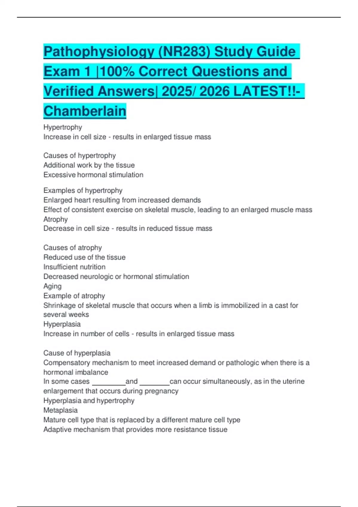 Pathophysiology (NR283) Study Guide