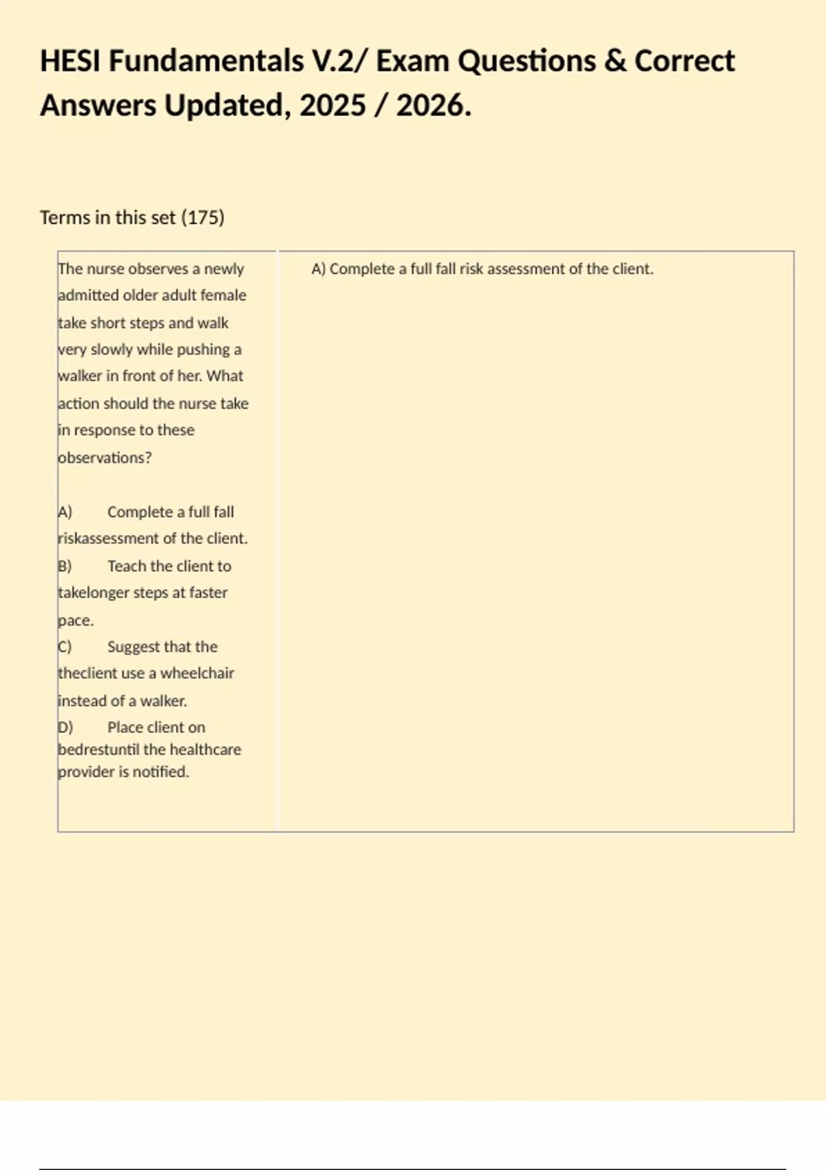 HESI Fundamentals V.2/ Exam Questions & Correct Answers Updated, 2025 / 2026.