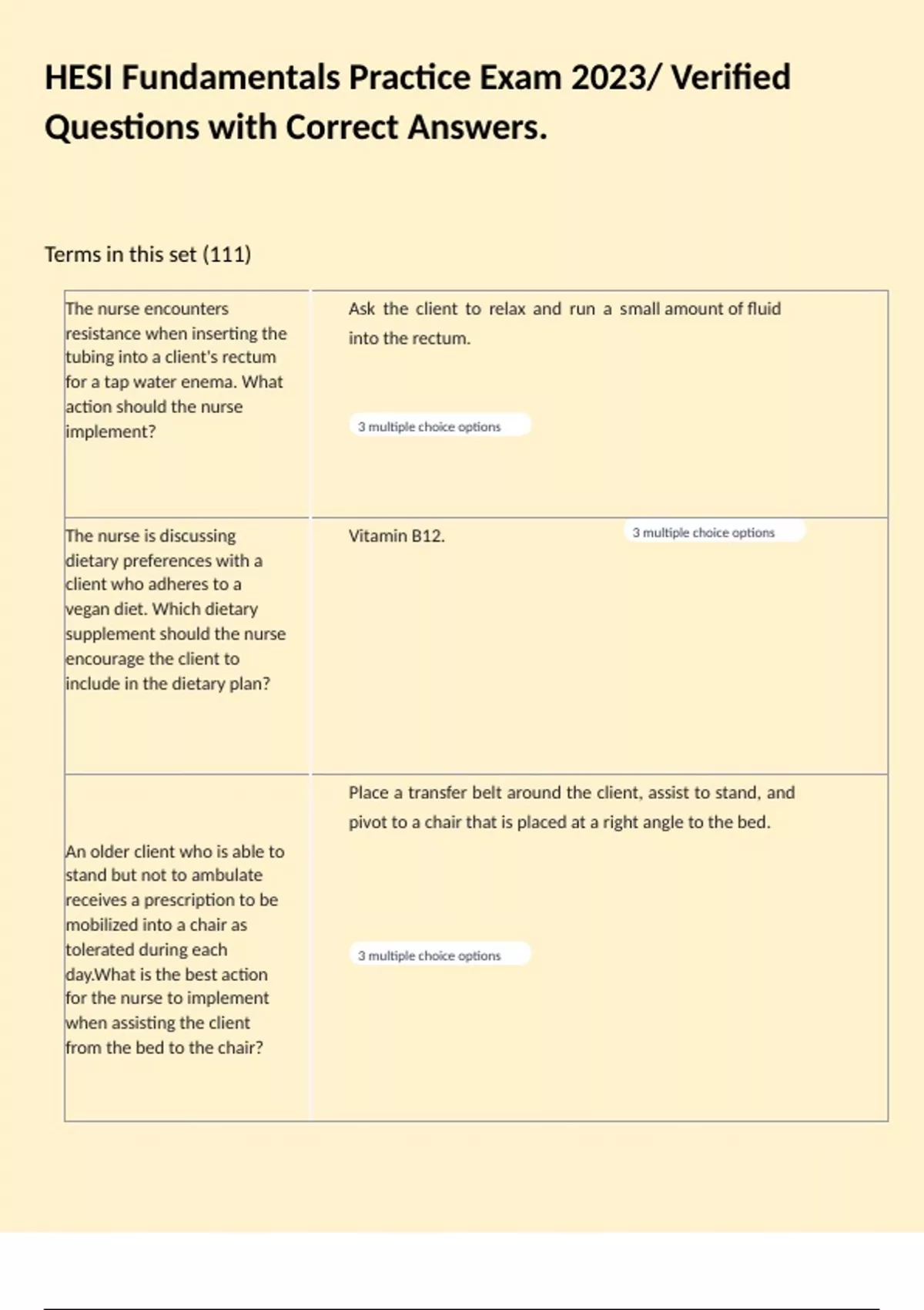 HESI Fundamentals Practice Exam 2023/ Verified Questions with Correct Answers.