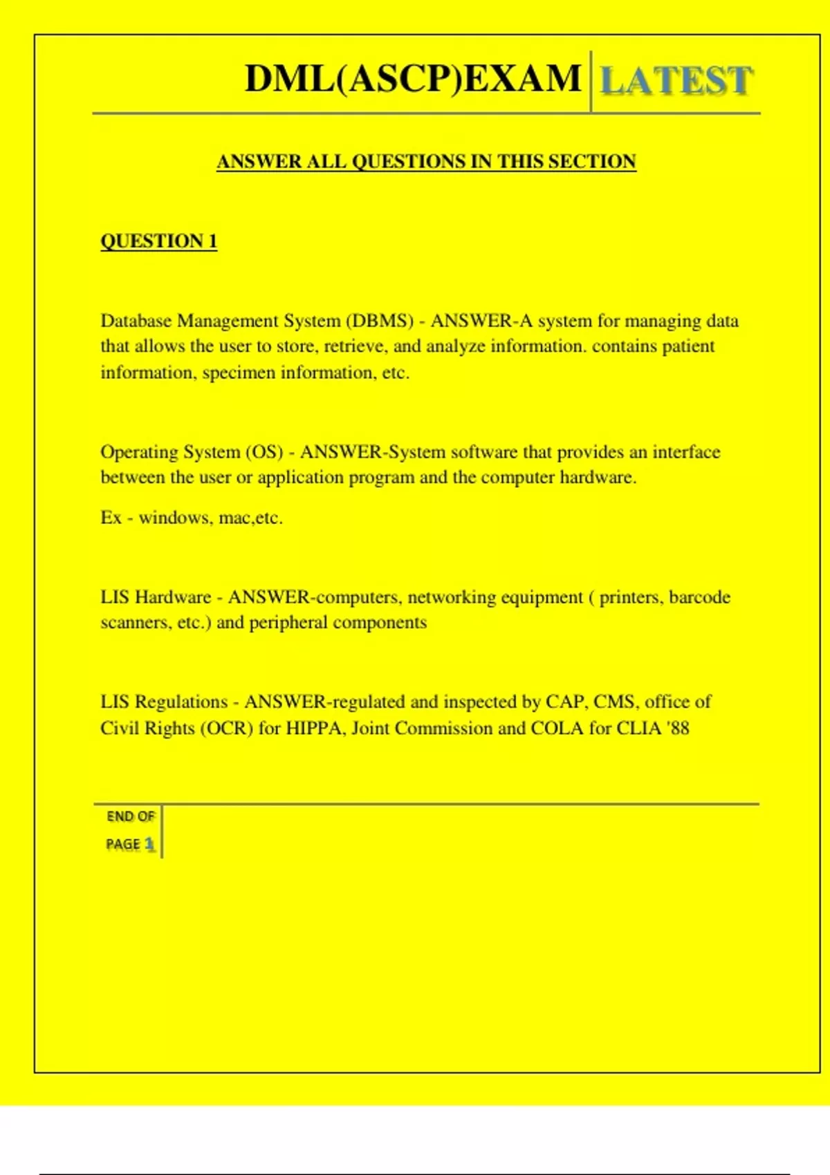 DML(ASCP)EXAM QUESTIONS AND ANSWERS 2025