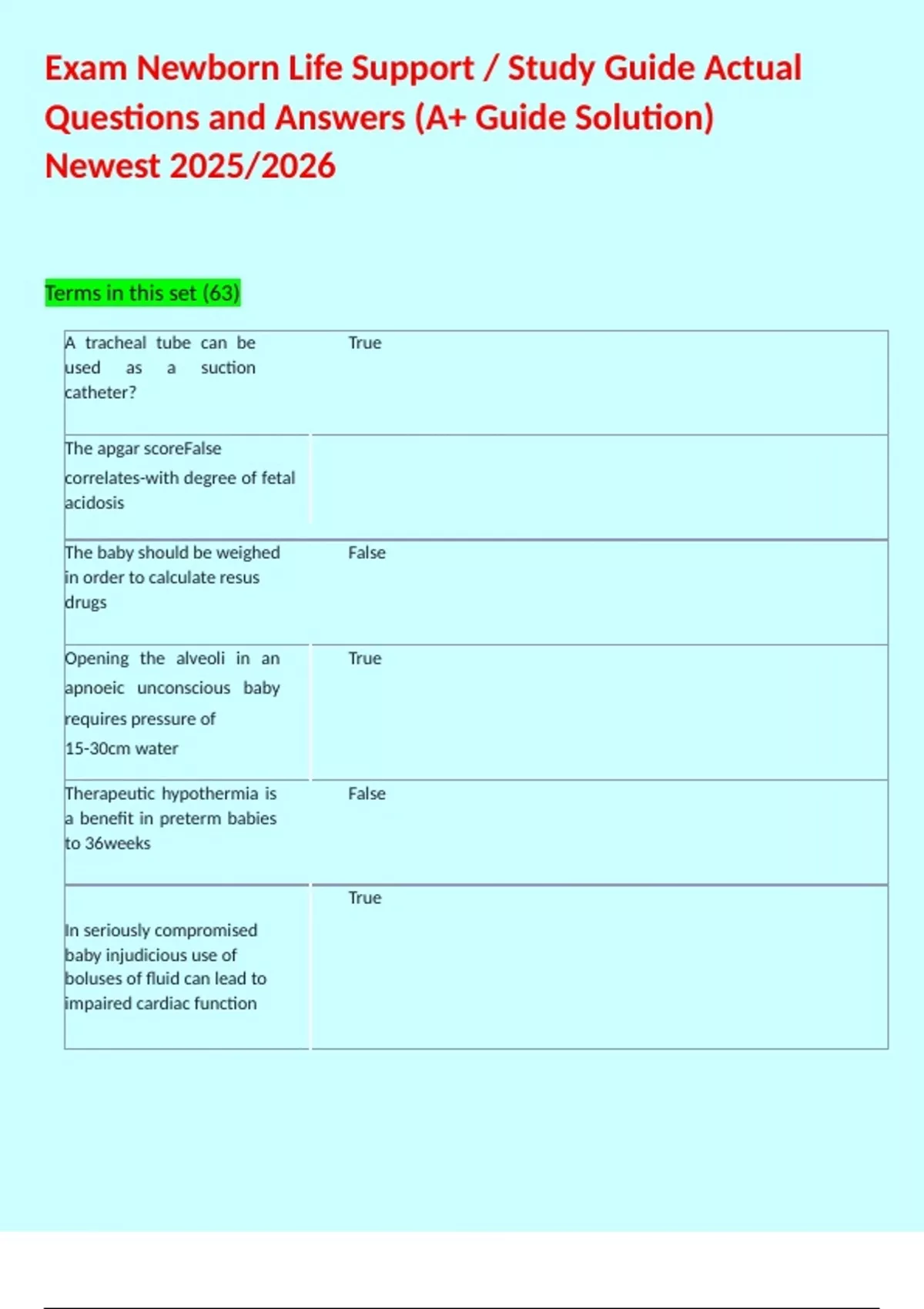 The apgar scoreFalse