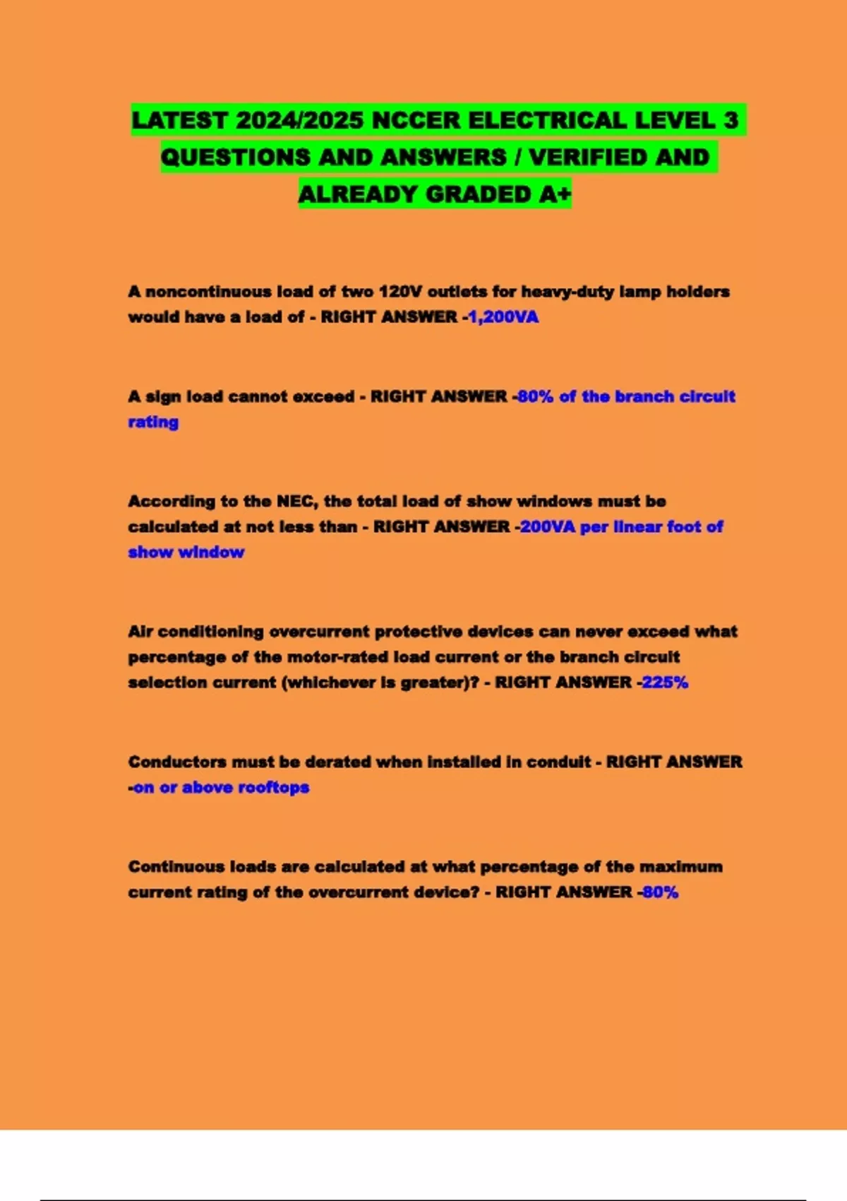 LATEST 2024/2025 NCCER ELECTRICAL LEVEL 3 QUESTIONS AND ANSWERS / VERIFIED AND ALREADY GRADED A+