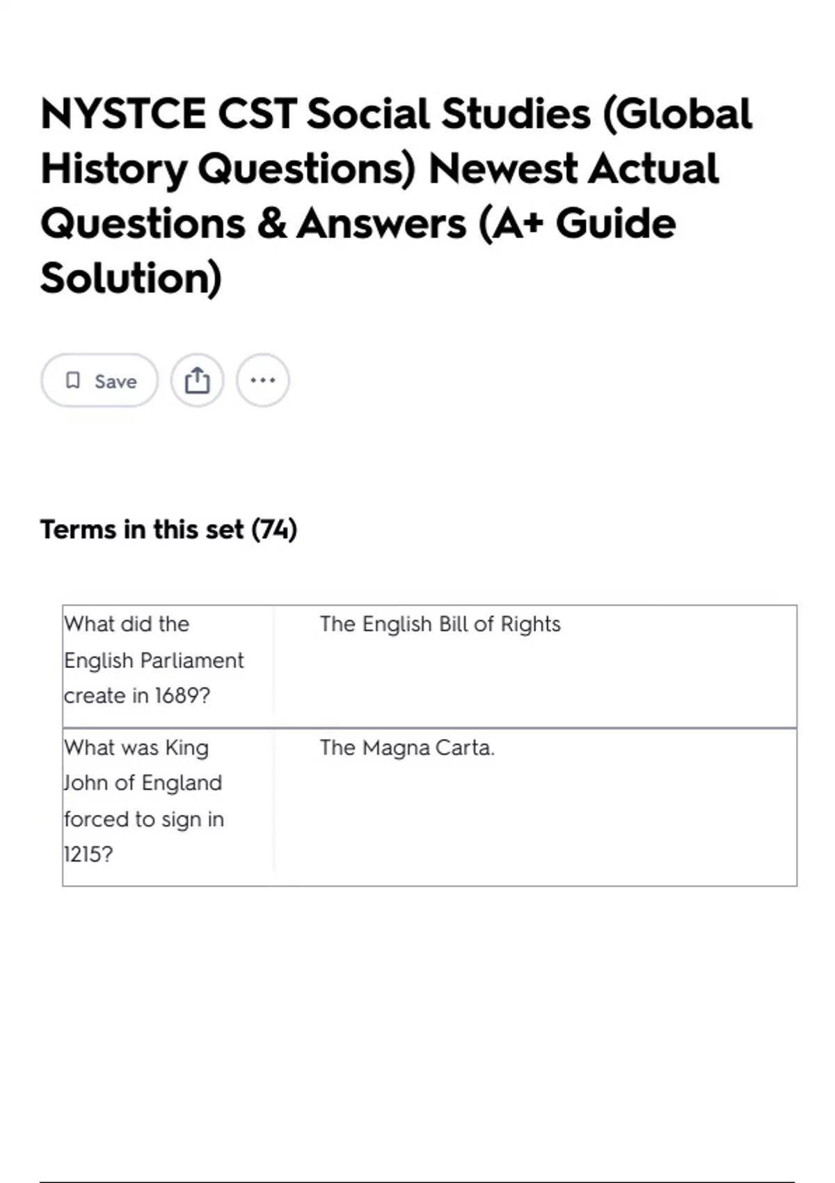 NYSTCE CST Social Studies (Global History Questions) Newest Actual Questions & Answers (A+ Guide Solution)